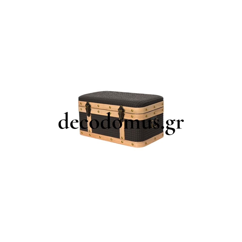 WOODEN TRUNK WITH BROWN FABRIC AND COPPER METAL ELEMENTS MEDIUM KAEMINGK Wood