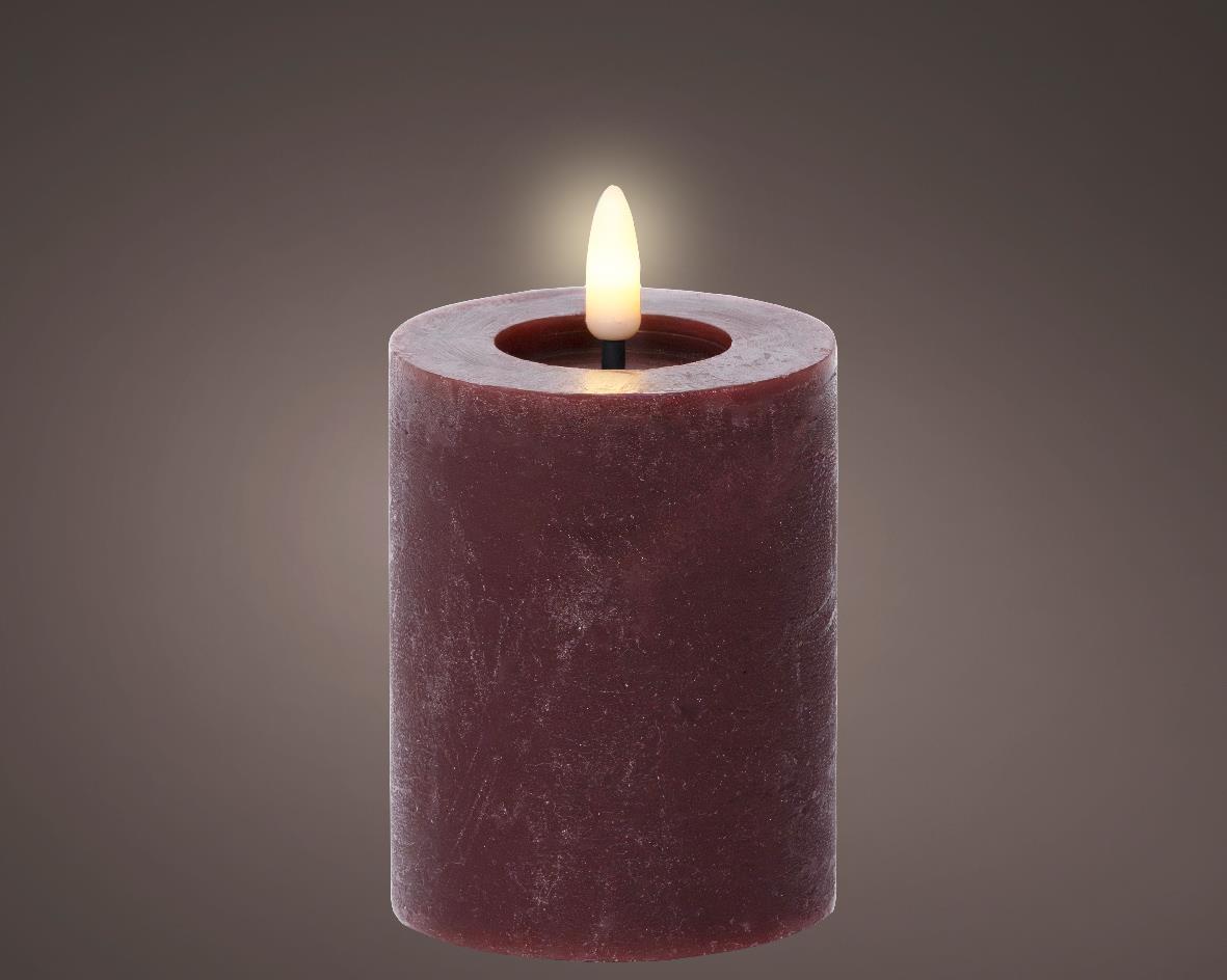 BURGUNDY LED CANDLE MADE OF NATURAL WAX WITH BATTERY AND TIMER FOR INDOOR USE 11.3CM. Synthetic Φ0.07*Η0.113