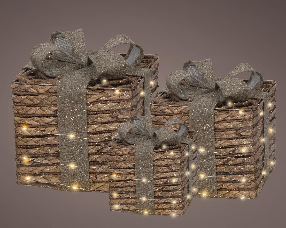 LUMINEO MICRO LED JUTE GIFTBOX WITH BATTERY AND TIMER MEDIUM jute
