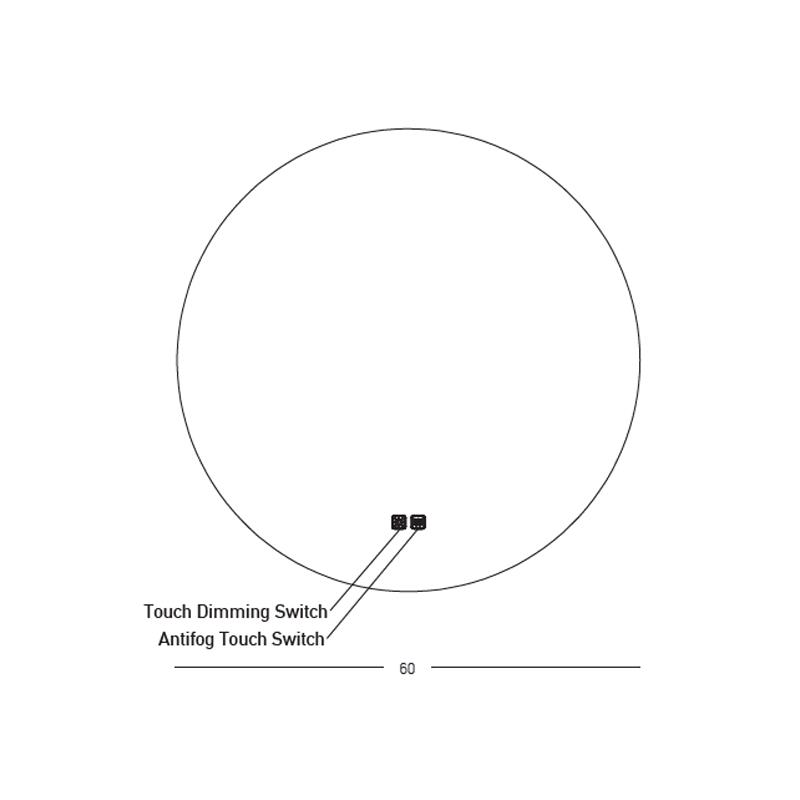 MIRROR WITH LED LIGHT 15W 3000K-4000K ROUND BACK LIGHT TOUCH DIMMING & ANTIFOG SWITCHES IP44 Aluminium Φ0.60