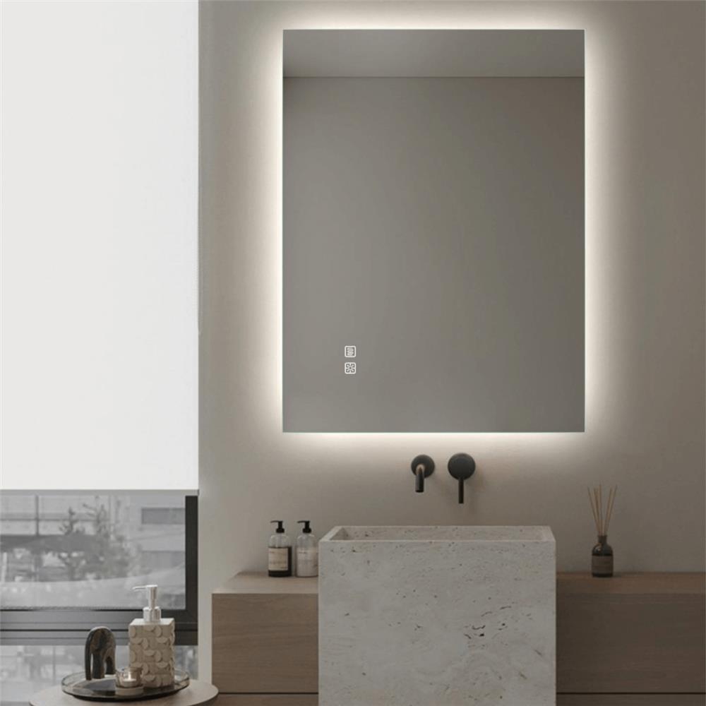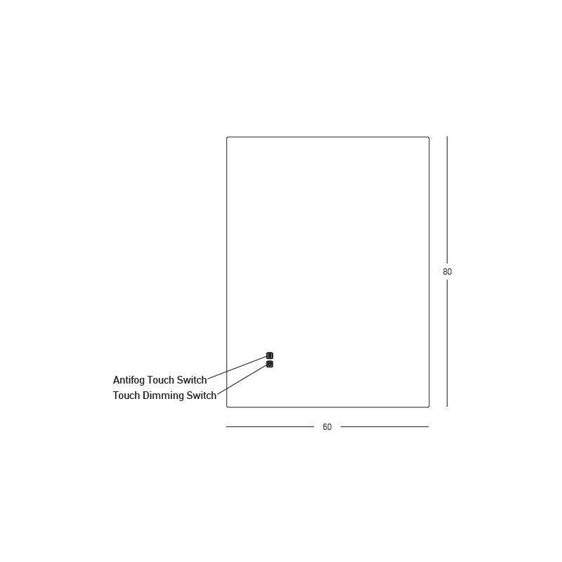 MIRROR WITH LED LIGHT 15W 3000K-4000K RECTANGLE BACK LIGHT TOUCH DIMMING & ANTIFOG SWITCHES IP44 Aluminium L0.60W0.03H0.80