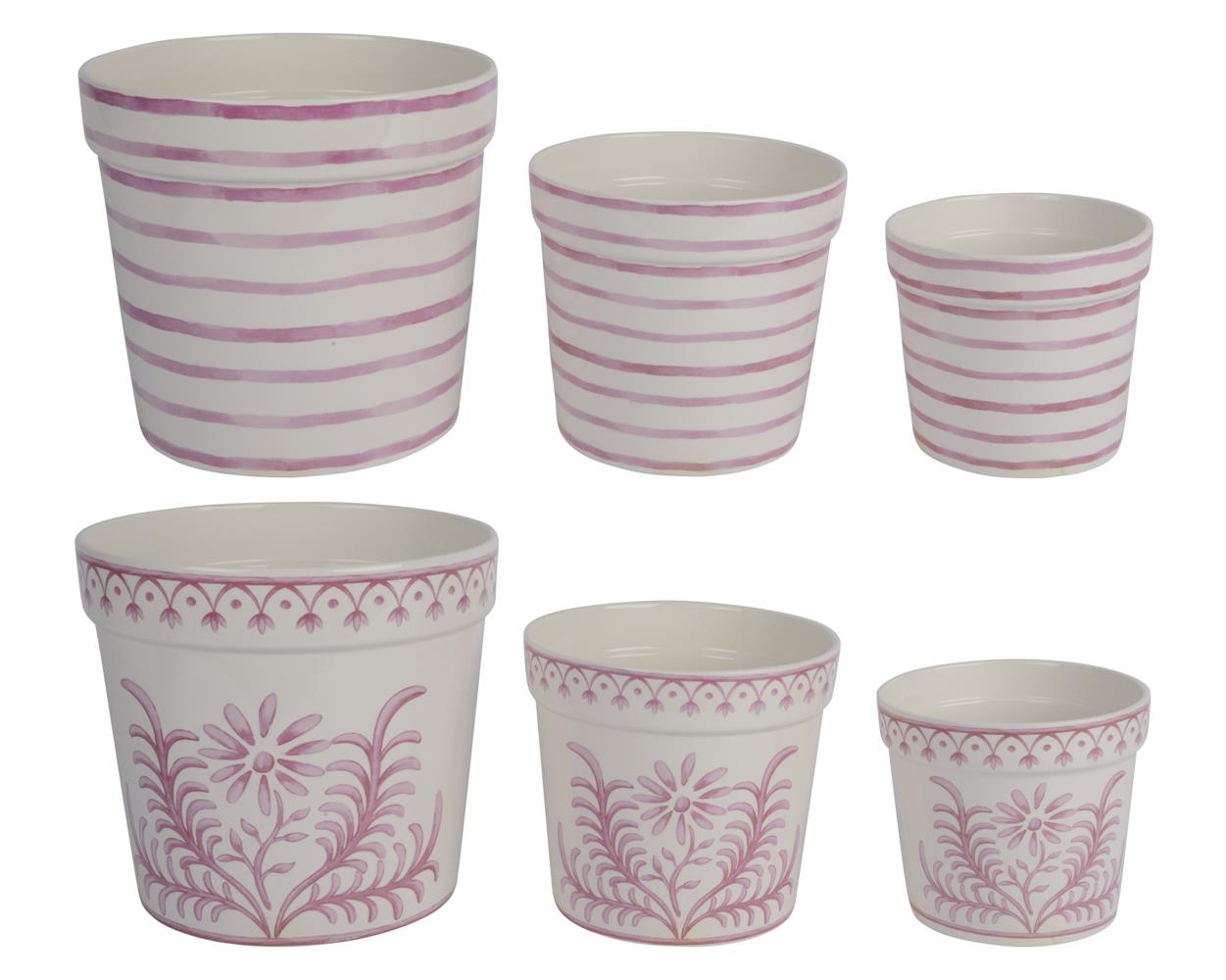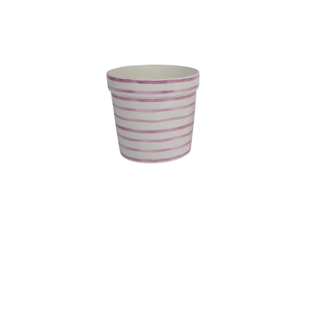 WHITE DOLOMITE PLANTER WITH LILAC STRIPES LARGE DECORIS Dolomite Φ0.27*Η0.25