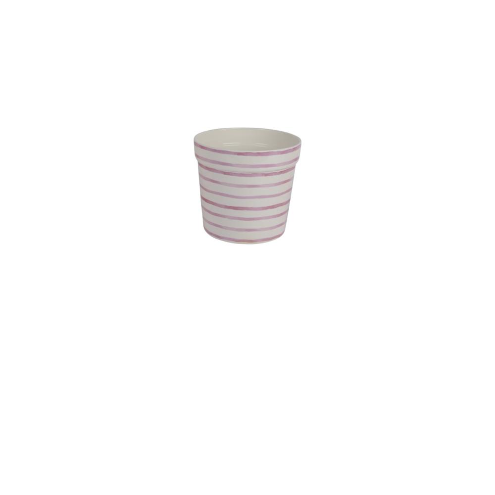 WHITE DOLOMITE PLANTER WITH LILAC STRIPES MEDIUM DECORIS Dolomite Φ0.21*Η0.19