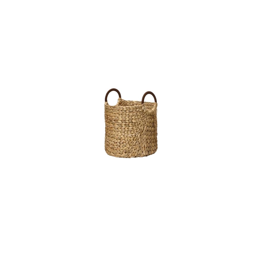 BASKET WATERHYACINT WITH BROWN WOODEN HANDLES MEDIUM KAEMINGK Wood Φ0.30*Η0.37