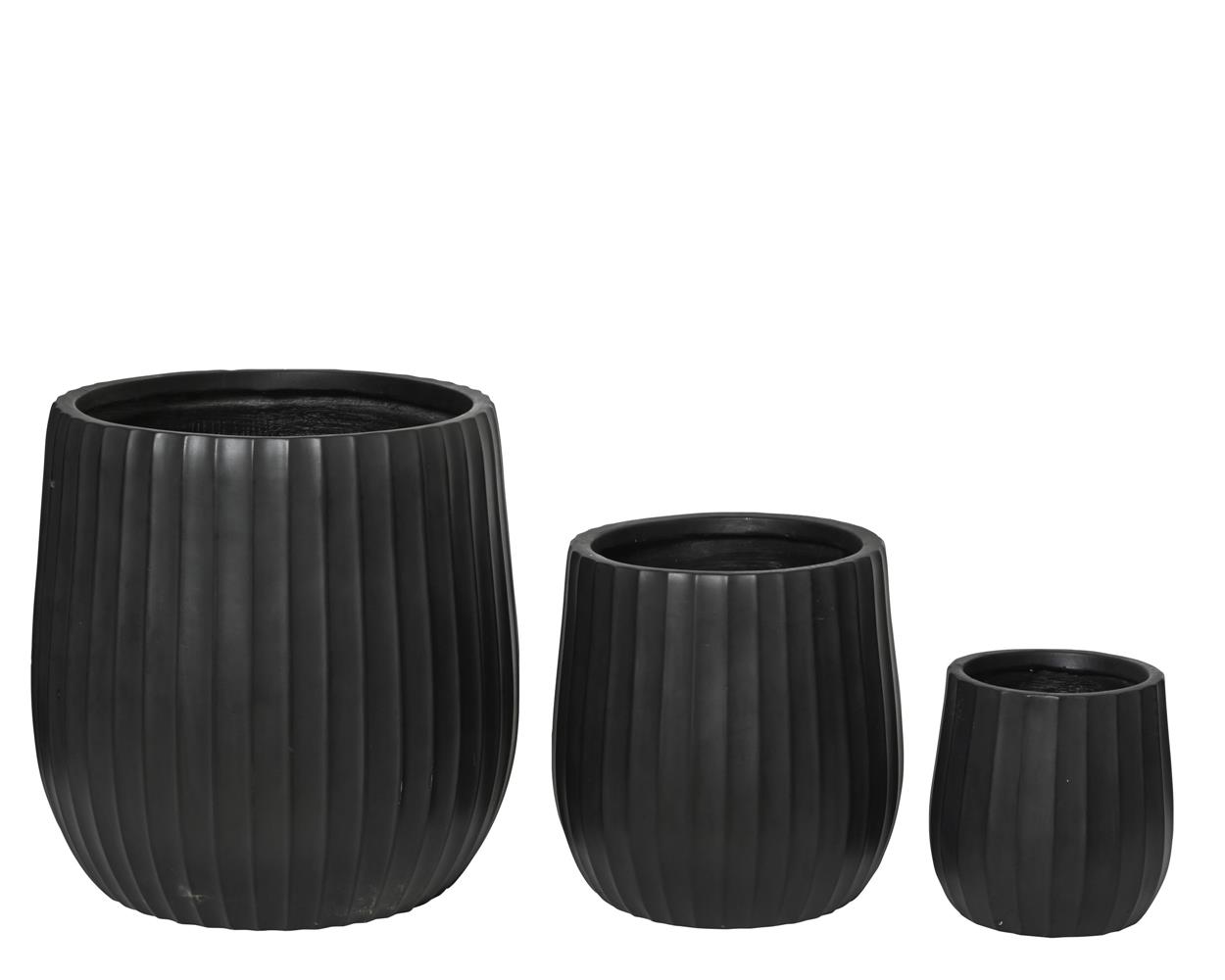 \"Στρογγυλή Μαύρη Γλάστρα Decoris από Fibre Clay με Φαρδιές Ραβδώσεις