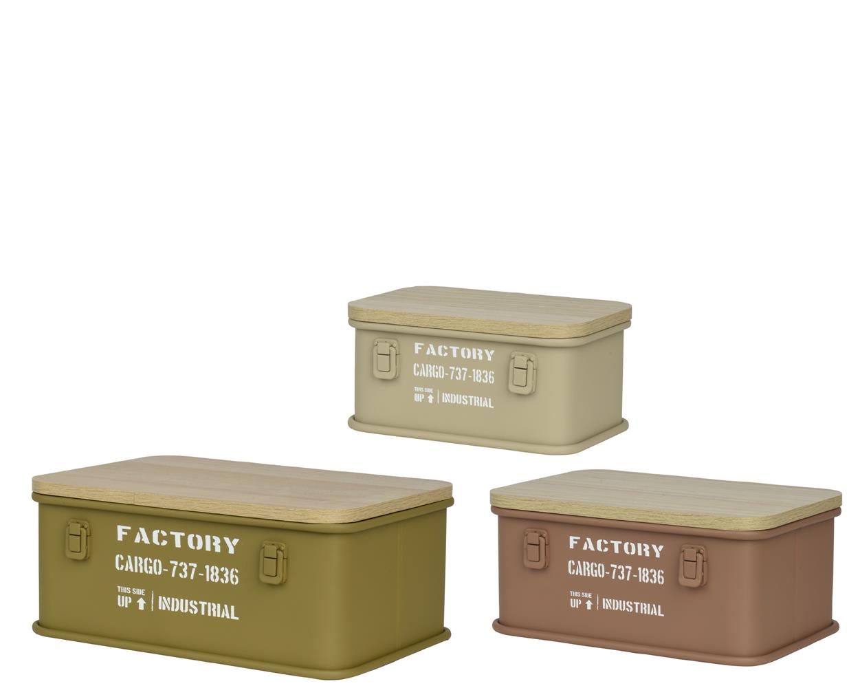 METAL STORAGE BOX WITH WOODEN LID GREEN LARGE DECORIS Metal L0.46W0.31H0.195