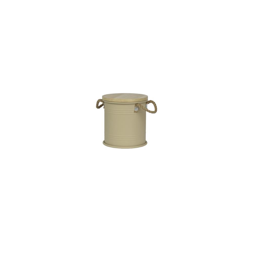 BEIGE ΚΥΛΙΝΔΡΙΚΟ ΜΕΤΑΛΛΙΚΟ ΚΟΥΤΙ ΑΠΟΘΗΚΕΥΣΗΣ ΜΕ ΞΥΛΙΝΟ ΚΑΠΑΚΙ SMALL DECORIS Metal Φ0.25*Η0.27