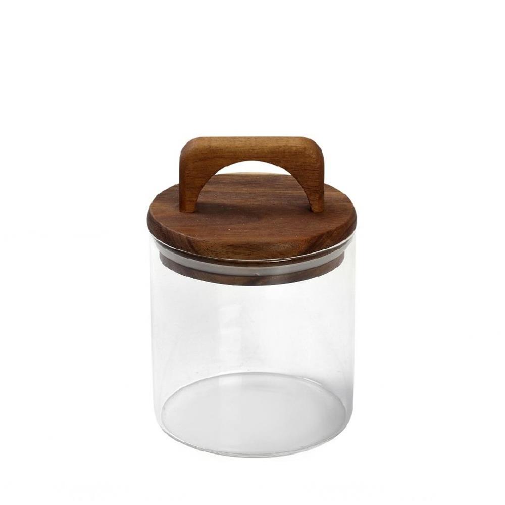 GLASS CONTAINER WITH ACACIA LID 550ML 10X14.5EK Glass Φ0.10*Η0.145