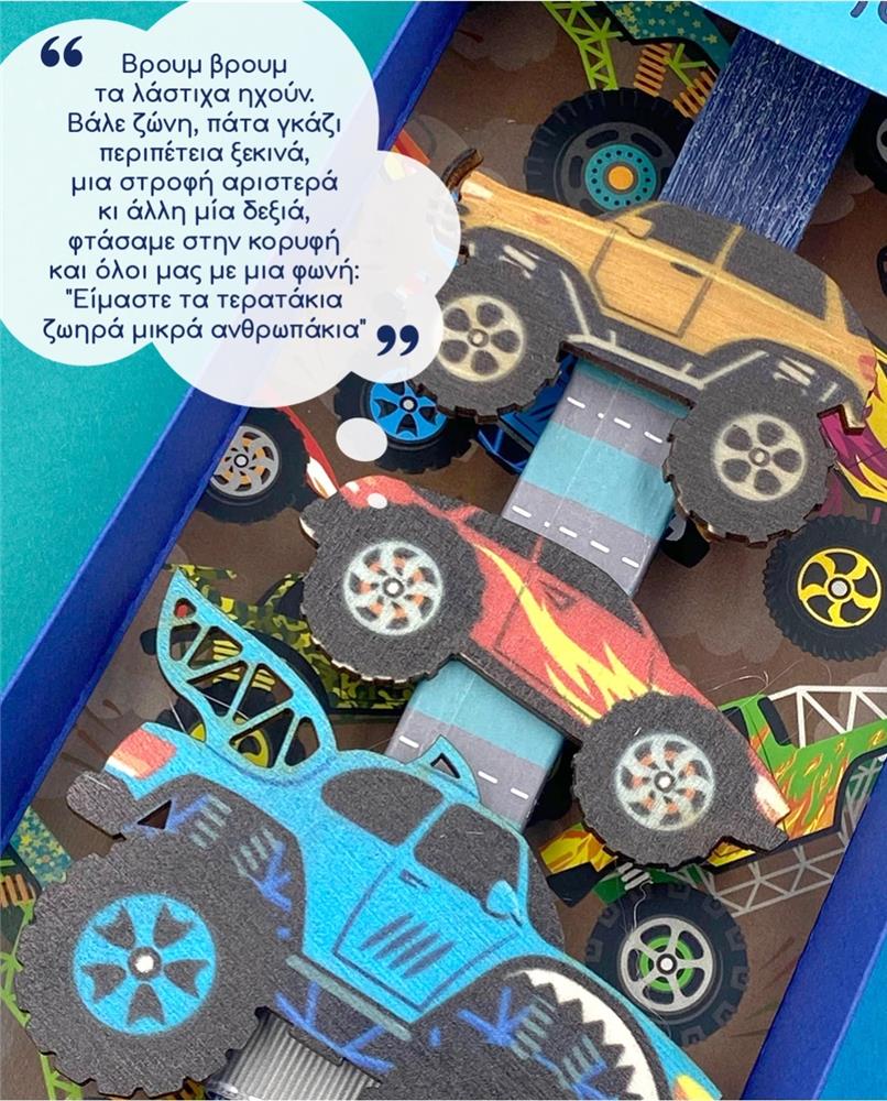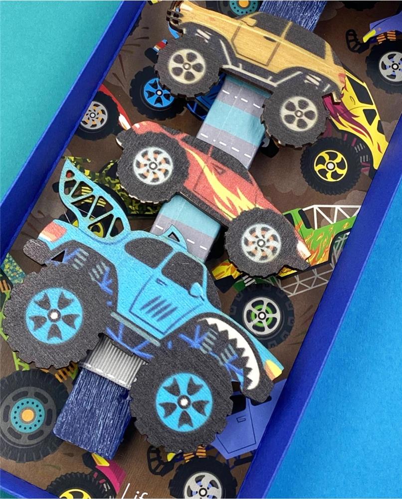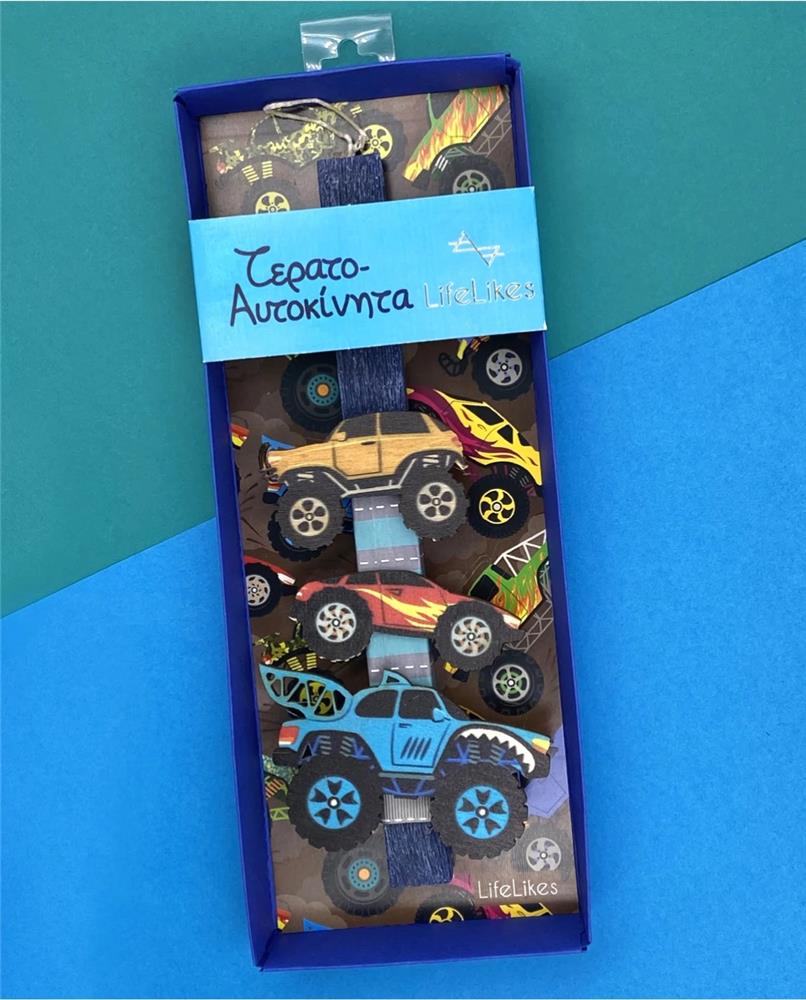 For your favorite christening party that loves cars, the \"Monster Cars\" is the ideal candle. It consists of a blue candle, decorated with three racing cars, which can then be unzipped and stuck wherever the children wish, since they are magnets. The candle is \"hosted\" in a wonderful gift box, illustrated with cars, ready to be donated to your favorite christening parties. And on the back of the candle, a little poem, for all the little kids: \"Broom broom the tires are sounding Fasten your seat belt, step on the gas the adventure begins a turn left and another right we reached the top and all of us with one voice: \"We are the monsters lively little people\"