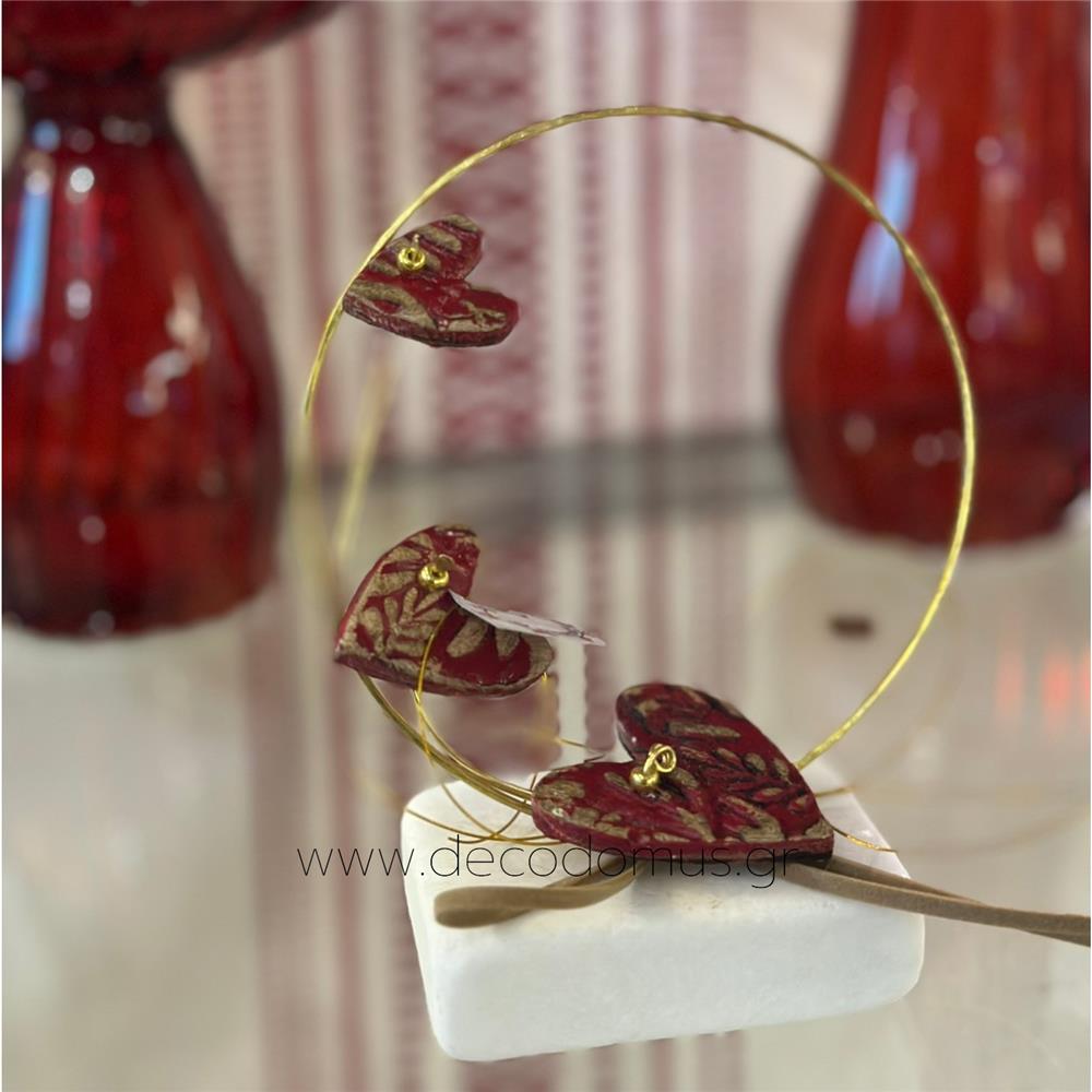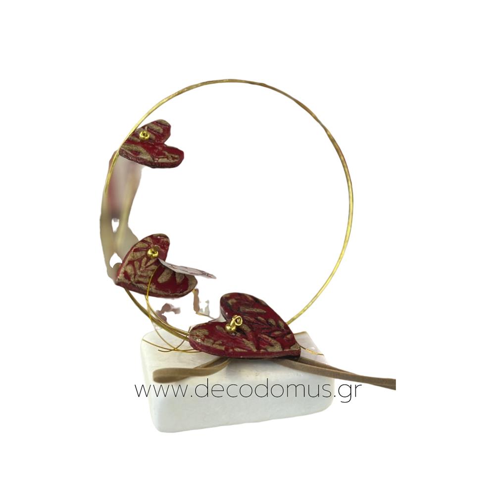 LARGE METAL CIRCLE WITH CERAMIC HEARTS ON A MARBLE BASE Metal L0.07W0.05H0.12