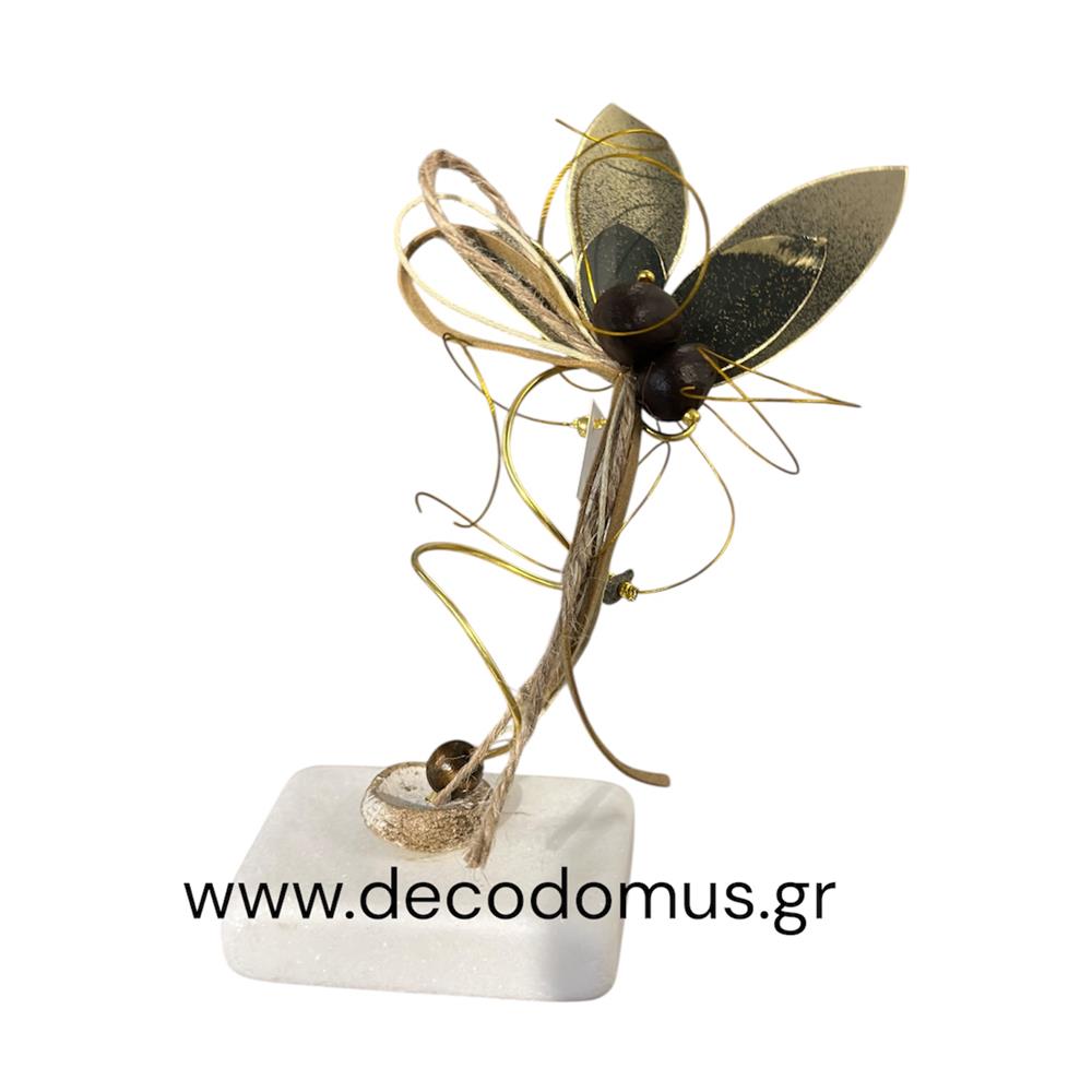METAL DECORATIVE WITH CERAMIC OLIVES ON A MARBLE BASE Metal L0.07W0.05H0.17
