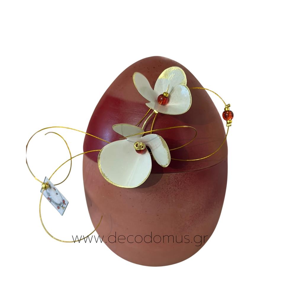 RED OPENING CERAMIC EGG WITH METAL PANSY MEDIUM Ceramic Φ0.095*Η0.13