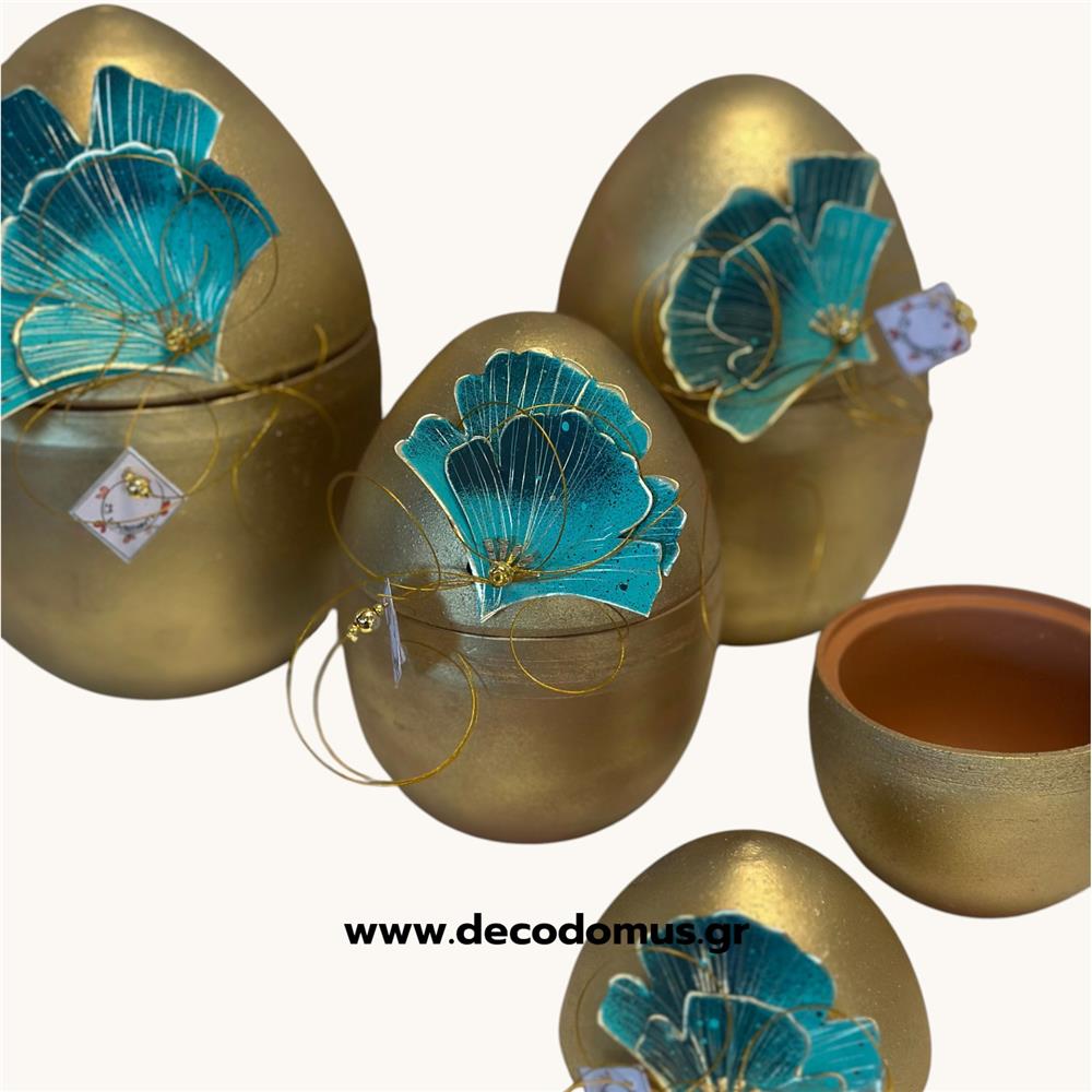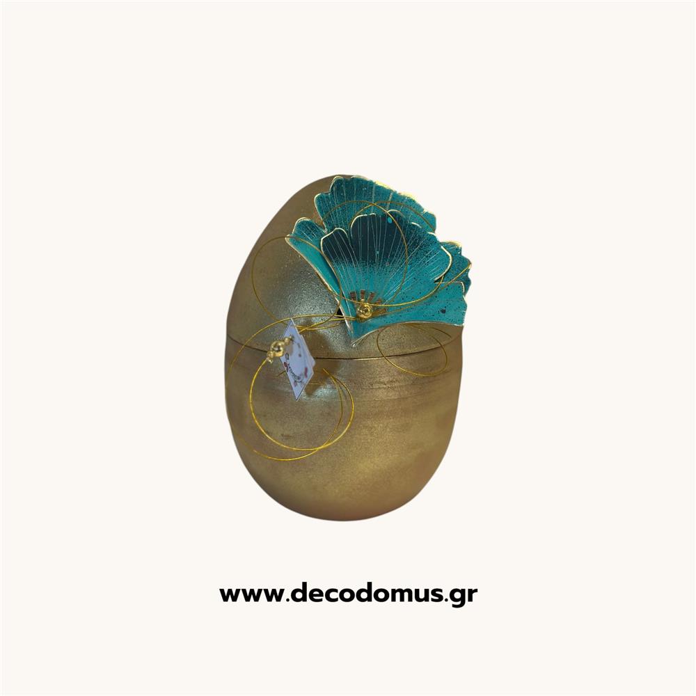 GOLDEN OPENING CERAMIC EGG WITH TURQUOISE METAL FLOWER MEDIUM Ceramic Φ0.095*Η0.13
