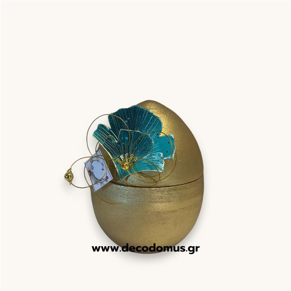 GOLDEN OPENING CERAMIC EGG WITH TURQUOISE METAL FLOWER SMALL Ceramic Φ0.08*Η0.10