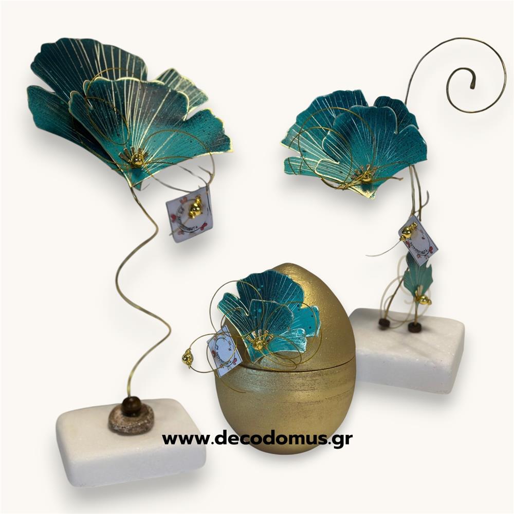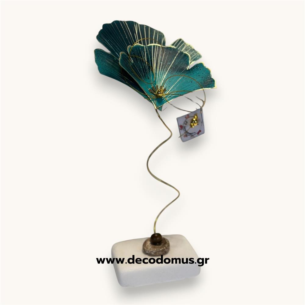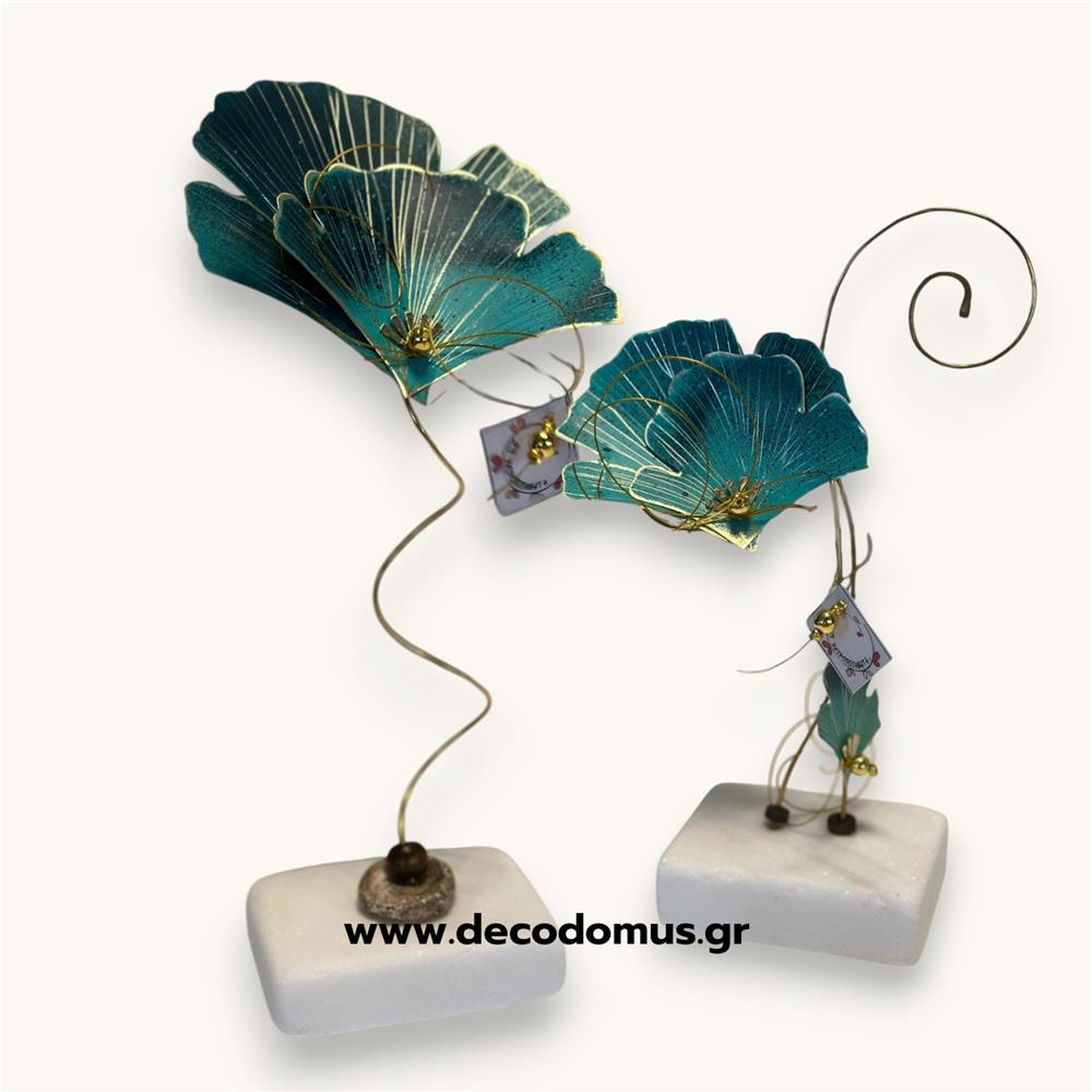 TALL TURQUOISE METAL FLOWER ON MARBLE BASE Metal L0.12W0.05H0.24