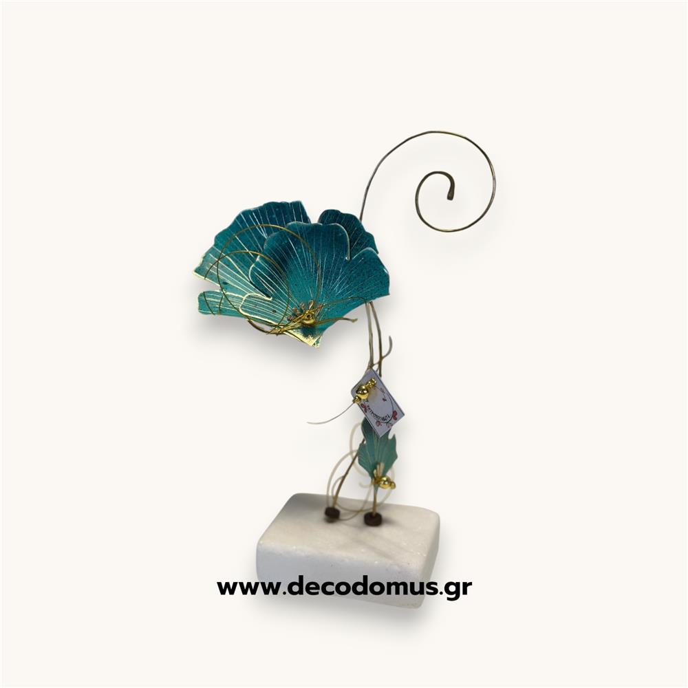 SHORT TURQUOISE METAL FLOWER ON MARBLE BASE Metal L0.12W0.05H0.17
