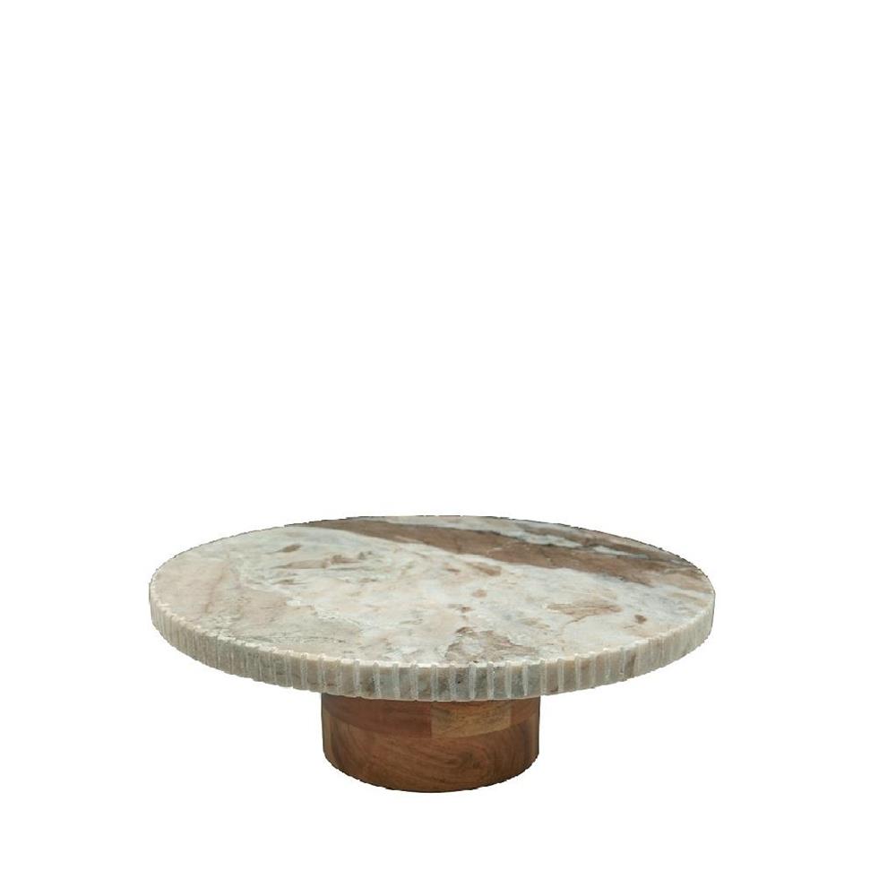 ROUND BEIGE MARBLE STAND WITH ACACIA WOODEN LEG Φ25 Wood Φ0.25*Η0.075