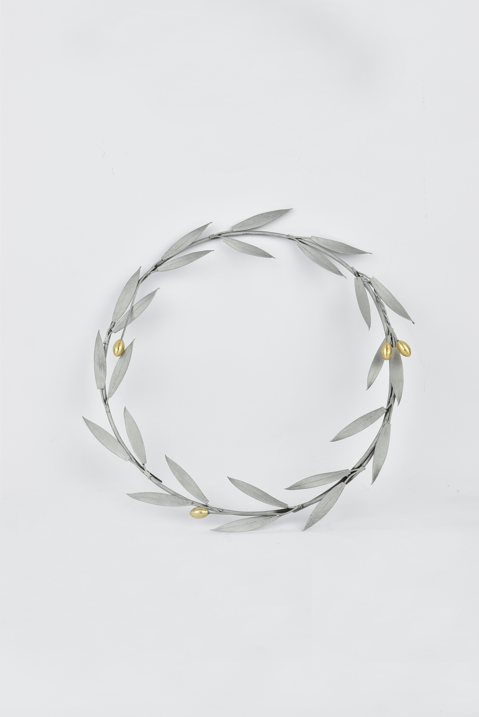 HANDMADE WALL SILVER HOOP WITH OLIVE LEAF Metal Φ22