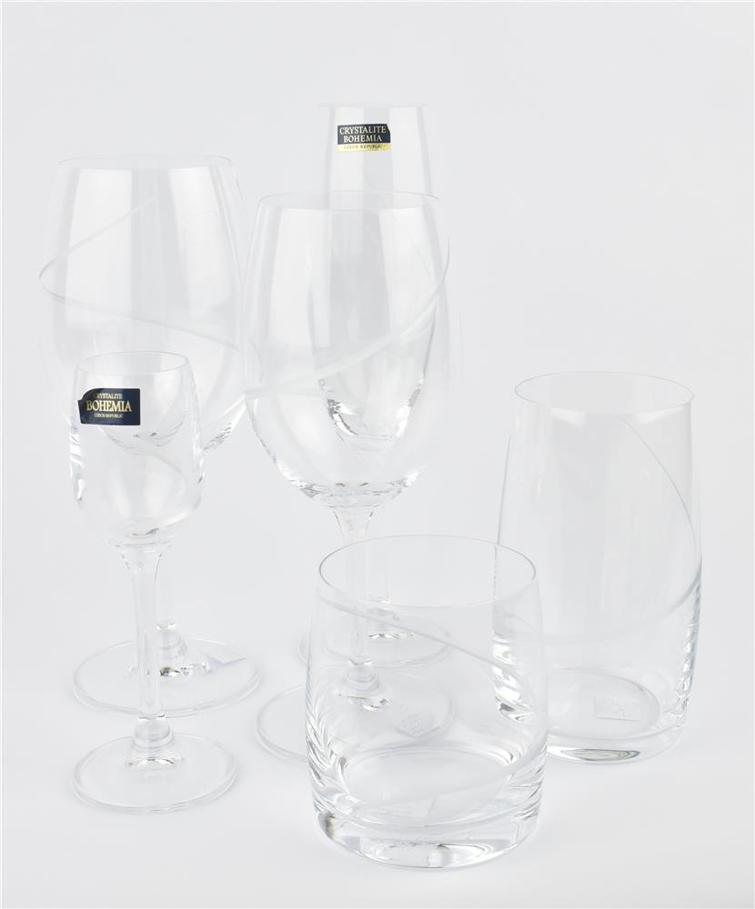 GLASS WITH LEG SYLVIA WITH OPALINE DESIGN 450ML 6 PIECES Crystal Φ6.3X20.5