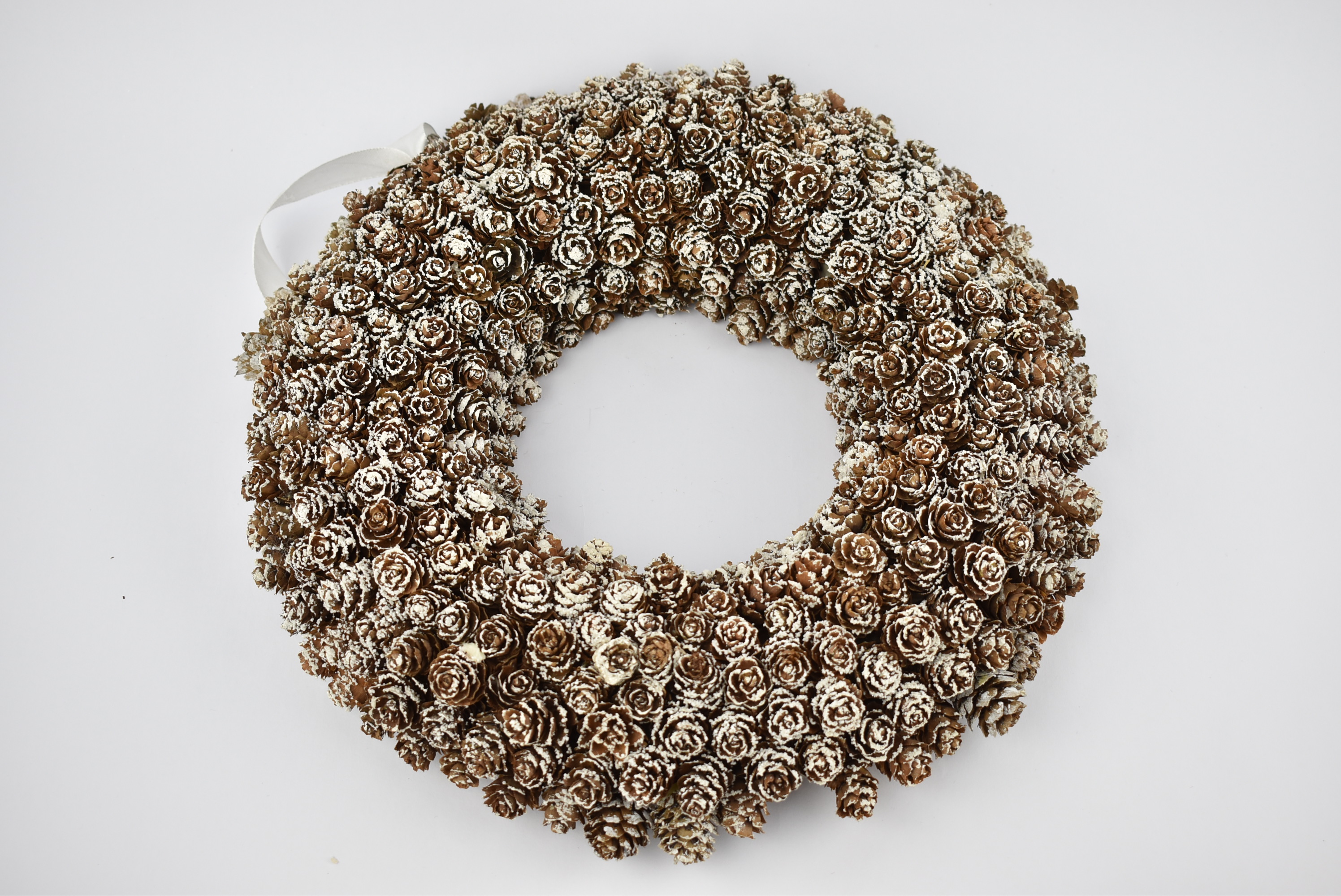 SNOWY HOOP WITH PINE CONES Wood Φ30