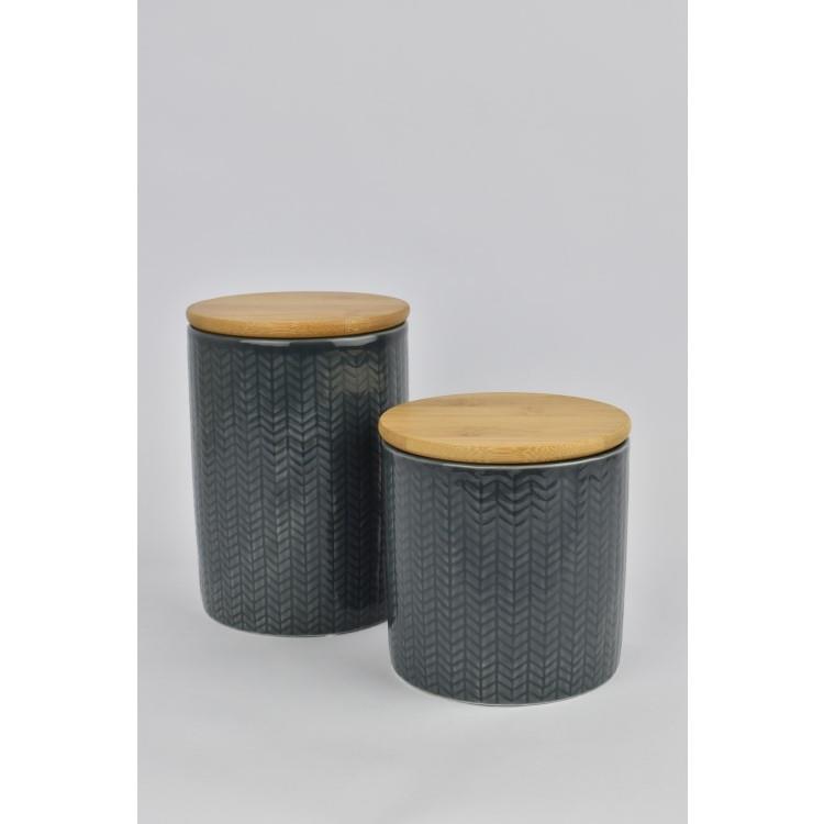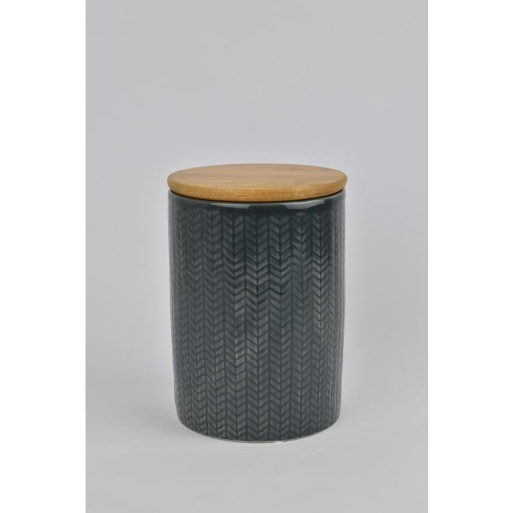 GREY-BLUE STORAGE JAR WITH WOODEN CAP Porcelain Φ10*15Υ