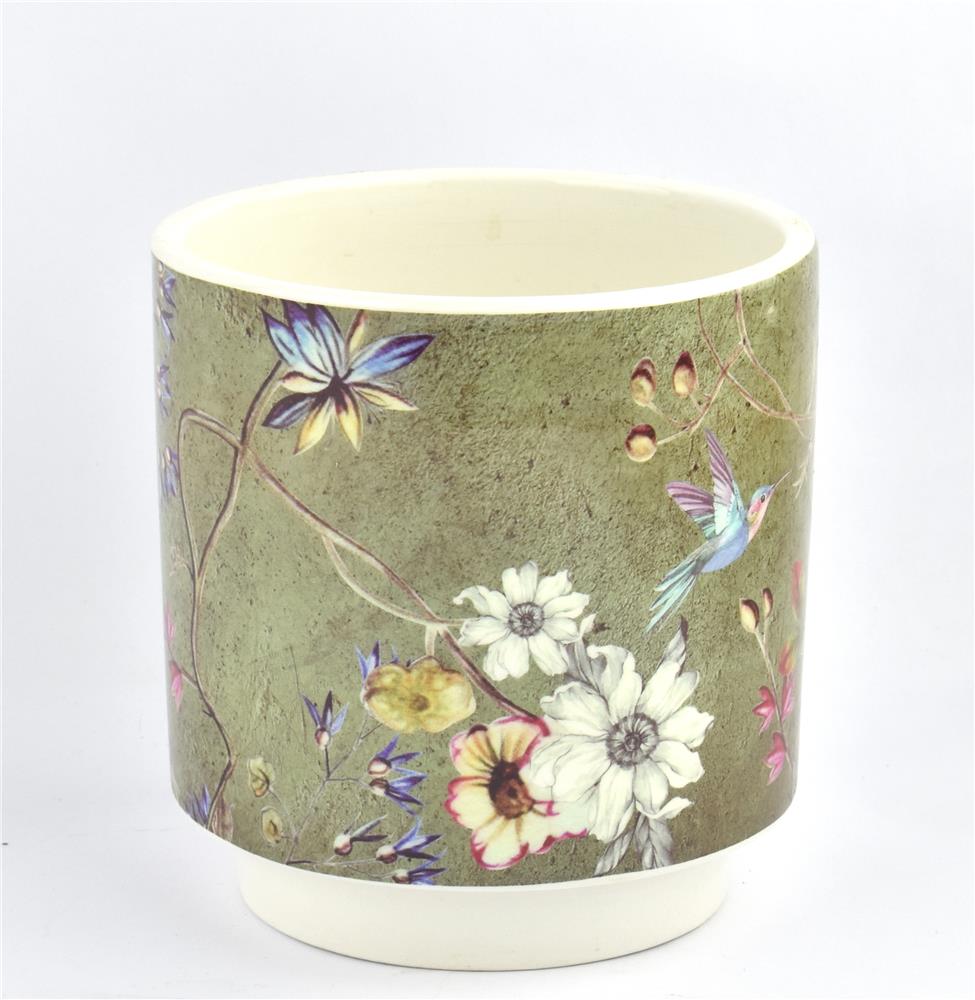 GREEN PLANTER WITH FLOWRES MEDIUM Ceramic Φ12*12.5