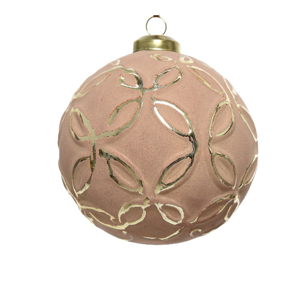 CHRISTMAS ORNAMENT - RED GLOSSY GLASS BALL WITH EMBOSSED LEAVES Glass DIM 10 CMSalesprice with discount7,5 €