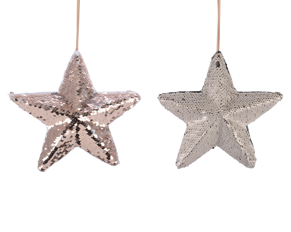 ORNAMENT LARGE STAR WITH SPANGLES 2 COLOURS Fabric 20*20*4.5