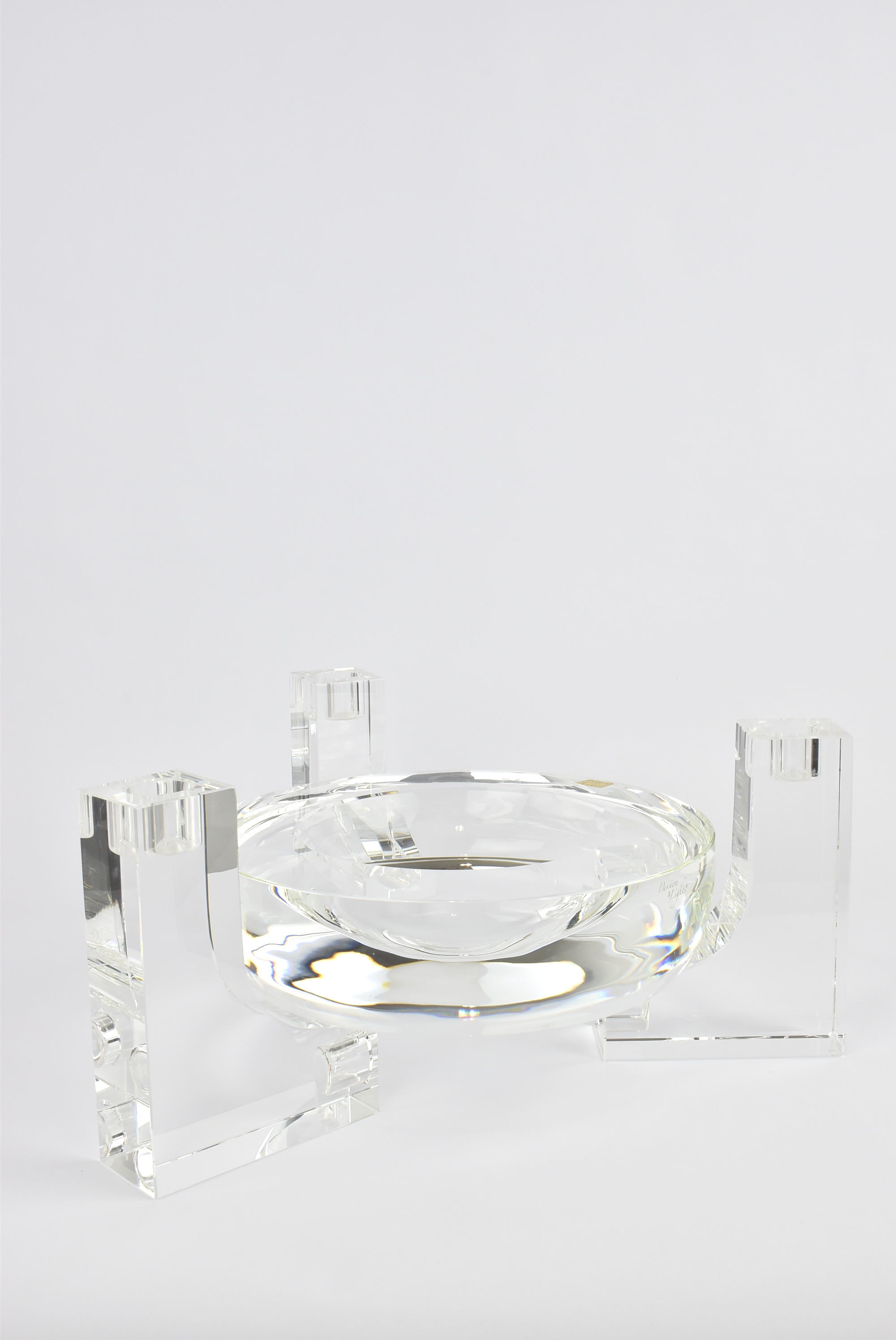 BOWL WITH 3 CANDLESTICKS Crystal 33*14