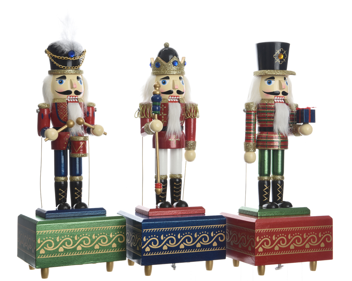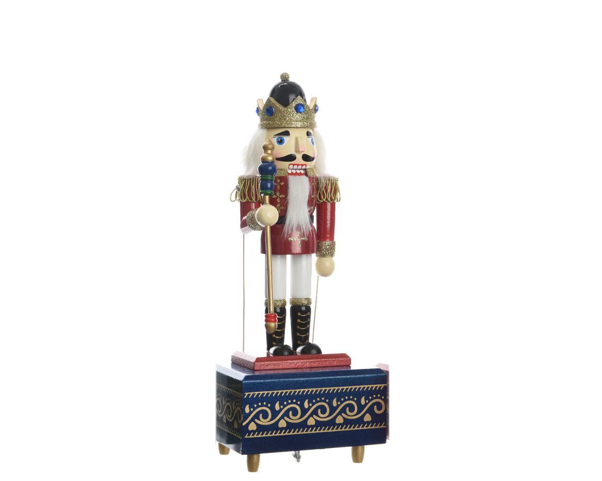CHRISTMAS DECORATIVE MUSIC BOX WITH WOODEN NUTCRACKER WITH POLE-KAEMINGK Wood 12*10*36