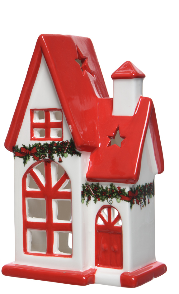 WHITE-RED HOUSE WITH DOUBLE ROOF 9.5*19.5