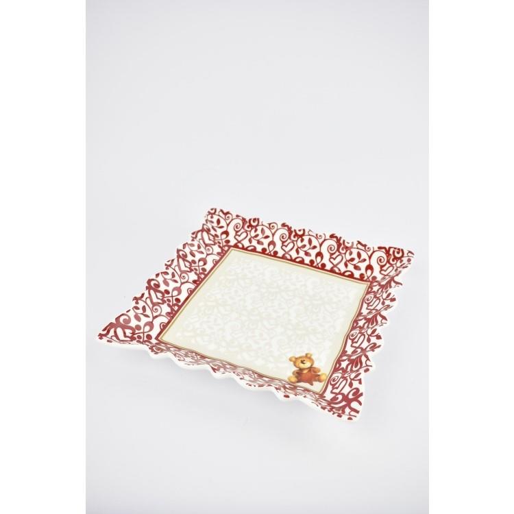 BRANDANI SQUARE BEIGE-RED PLATTER Porcelain 23*23