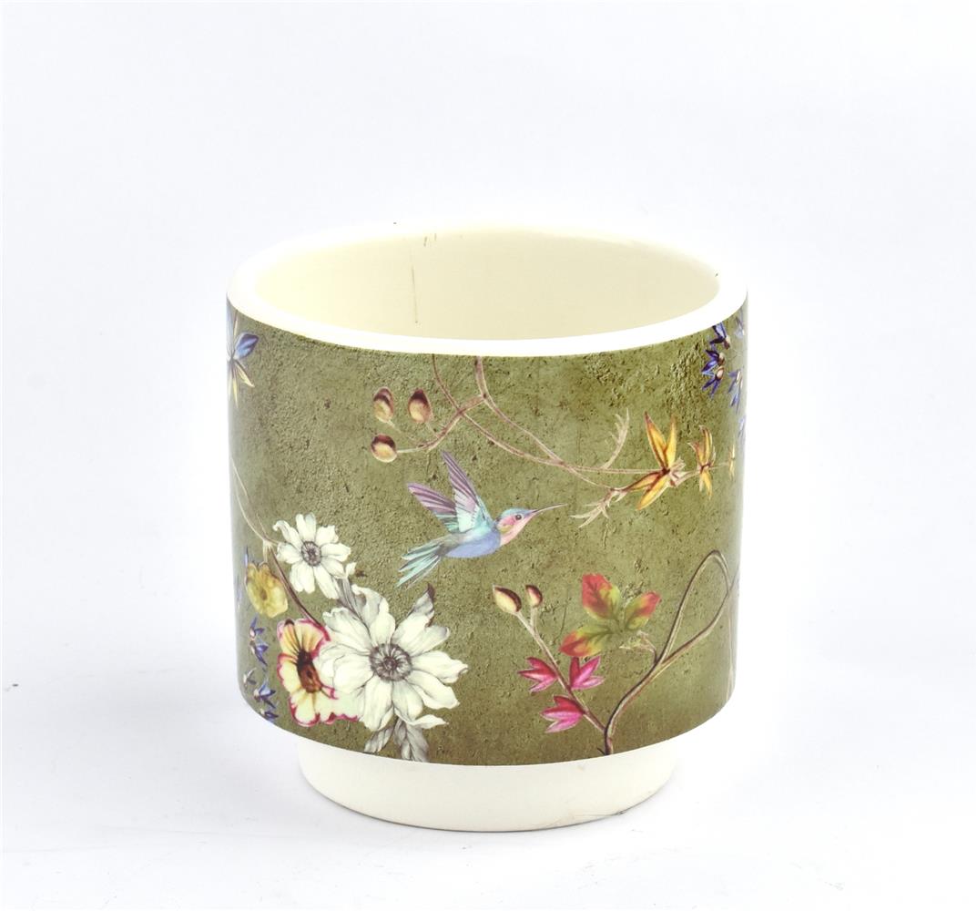 GREEN PLANTER WITH FLOWERS SMALL Ceramic Φ10*10