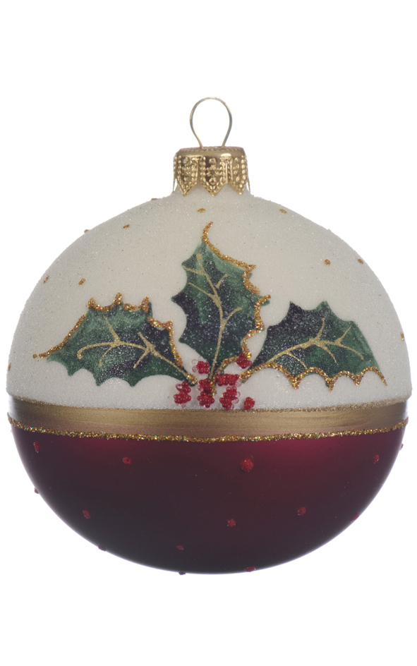 RED-WHITE STRIPED BALL WITH MISTLETOE MAT Glass Φ8