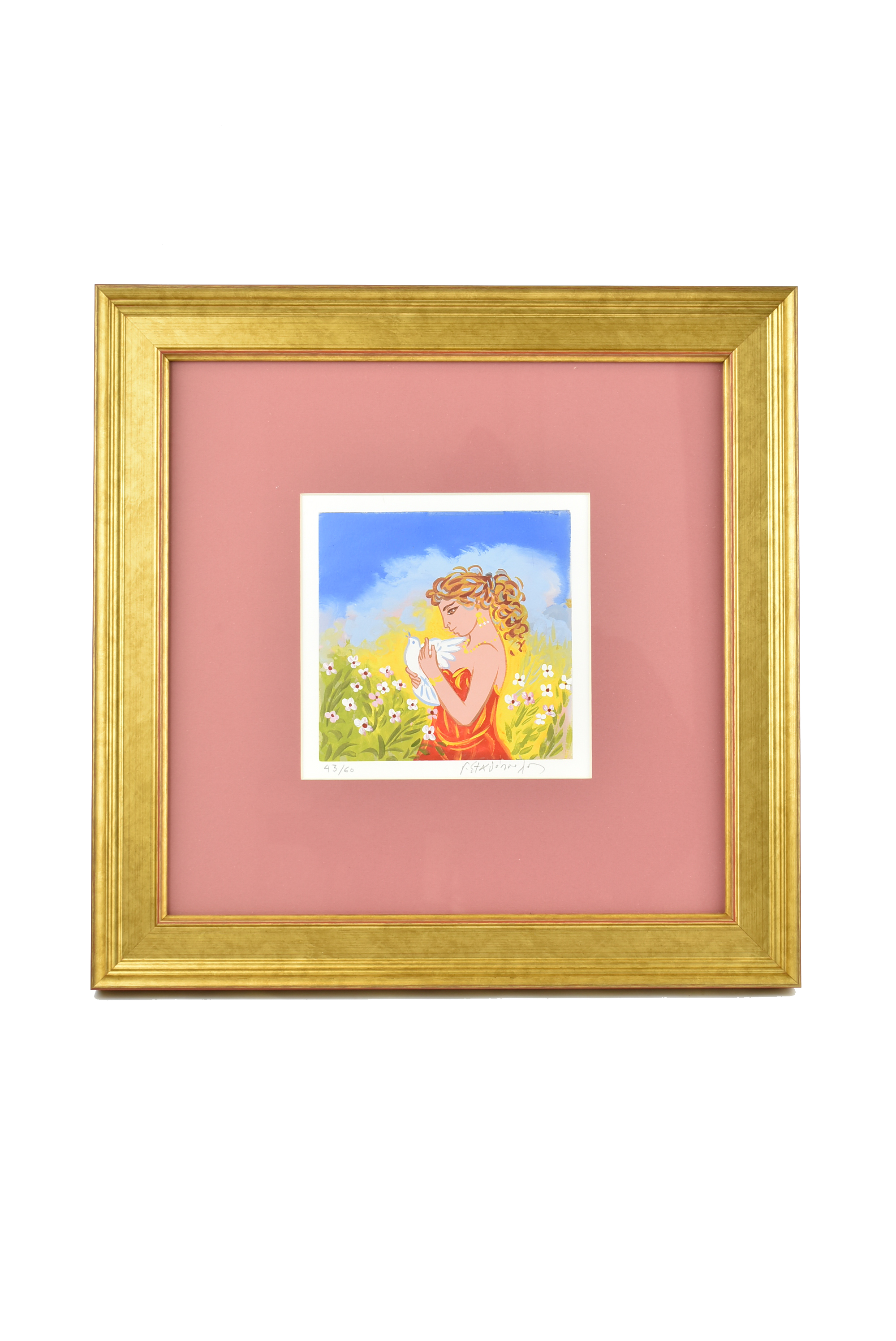 PAINTING ORIGINAL NUMBERED STATHOPOULOS COPY WOMAN GOLD FRAME AND PINK BACKGROUND Wood 42*42