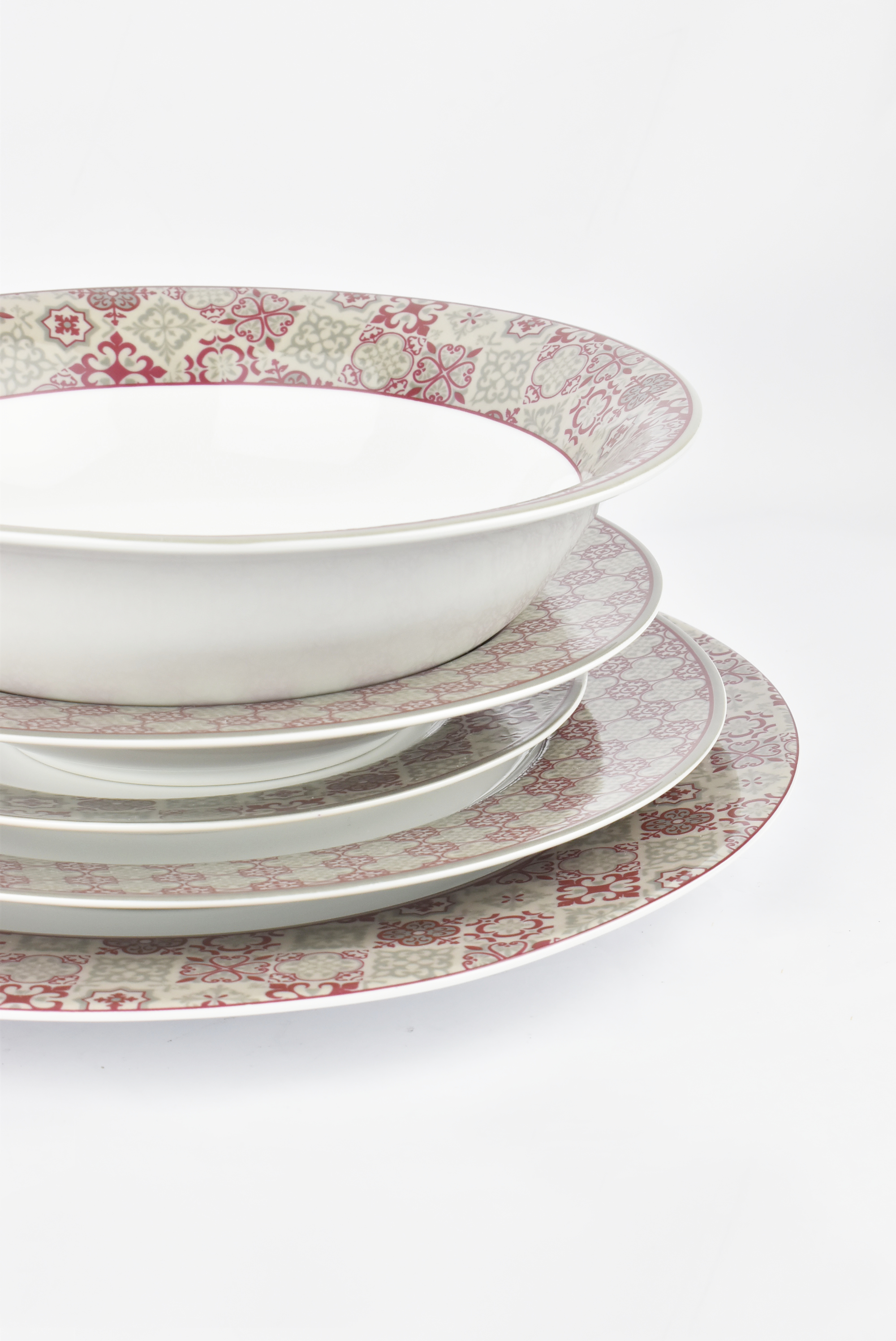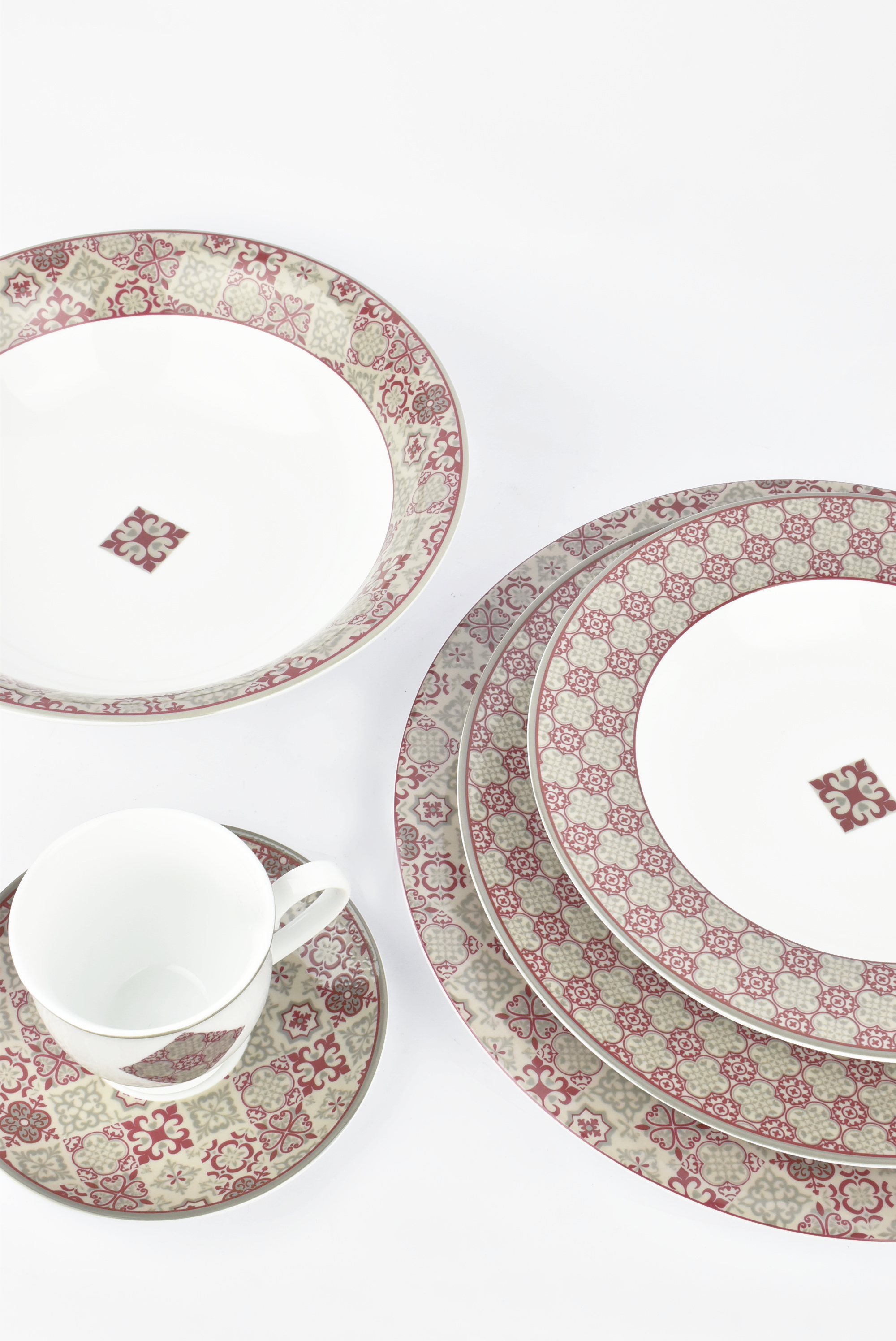 DINNER SET NEOCLASSICAL BURGUNTY AND GREY F. MALAMATOU 20 PIECES CZECH REPUBLIC PORCELAIN Porcelain