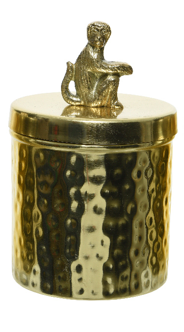GOLD FORGED METAL BOX WITH MONKEY Kaemingk Metal Φ10*13