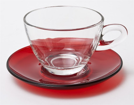 6 PIECES CUP OF TEA WITH RED PLATE Glass Φ10Χ13Χ7Υ