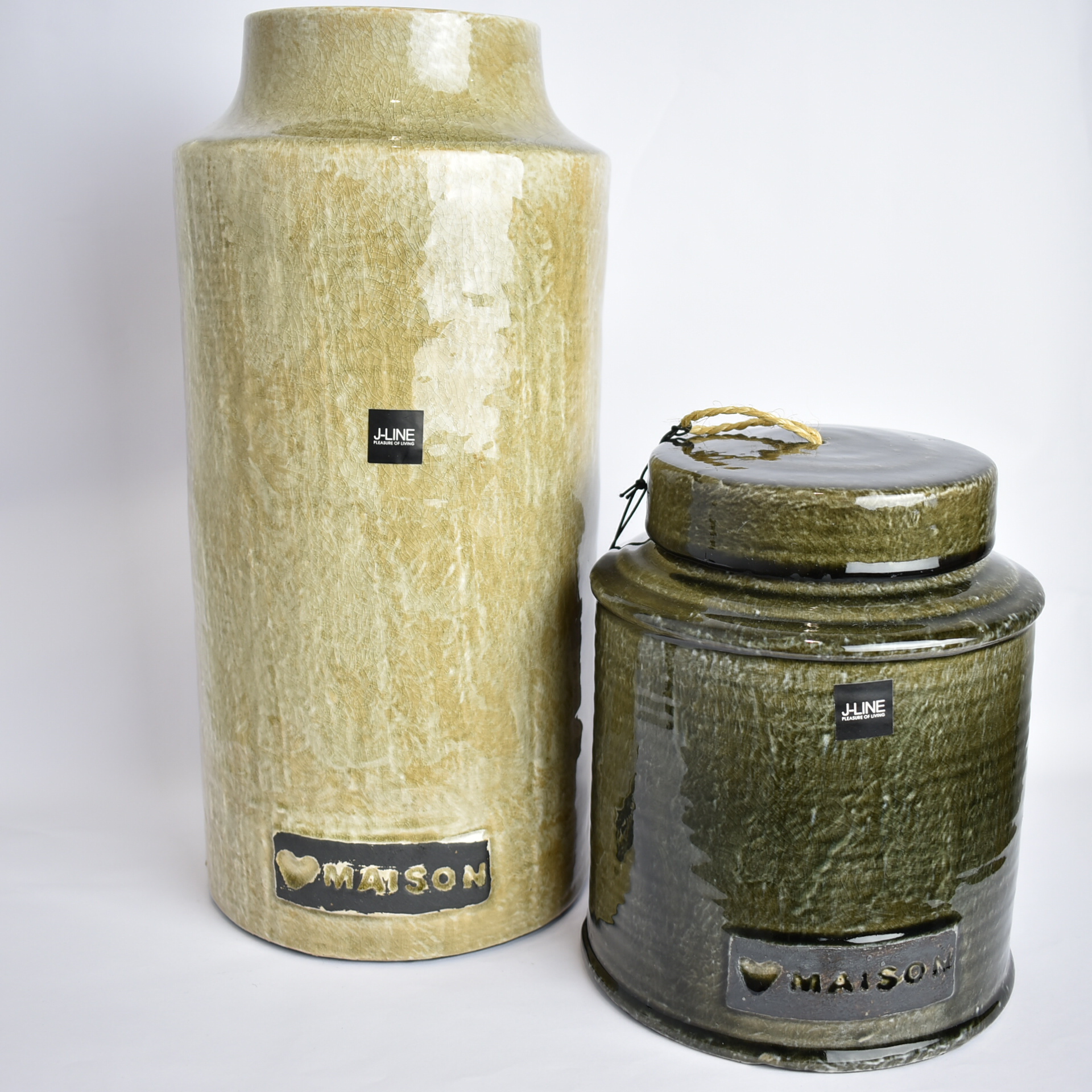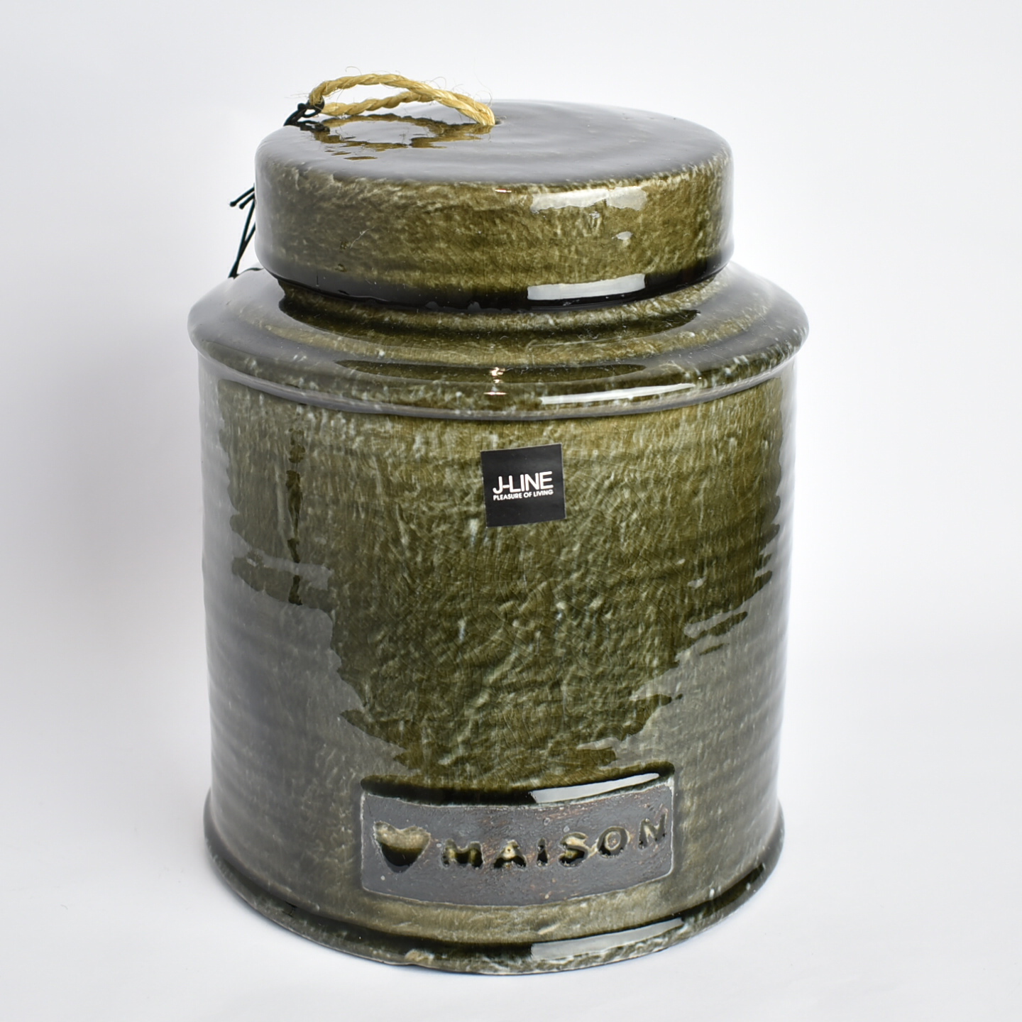 OLIVE GREEN VASE WITH LID Ceramic Φ18*21
