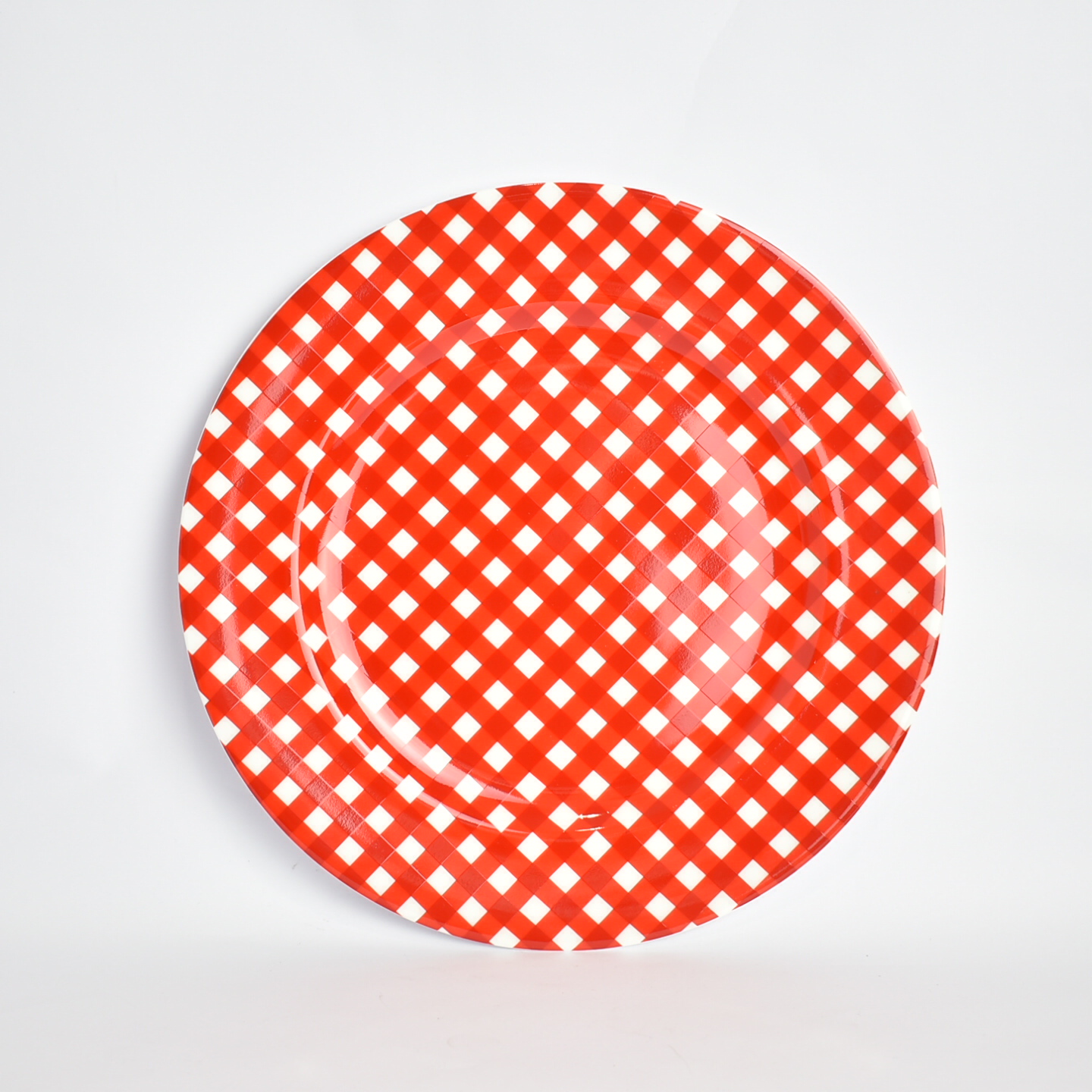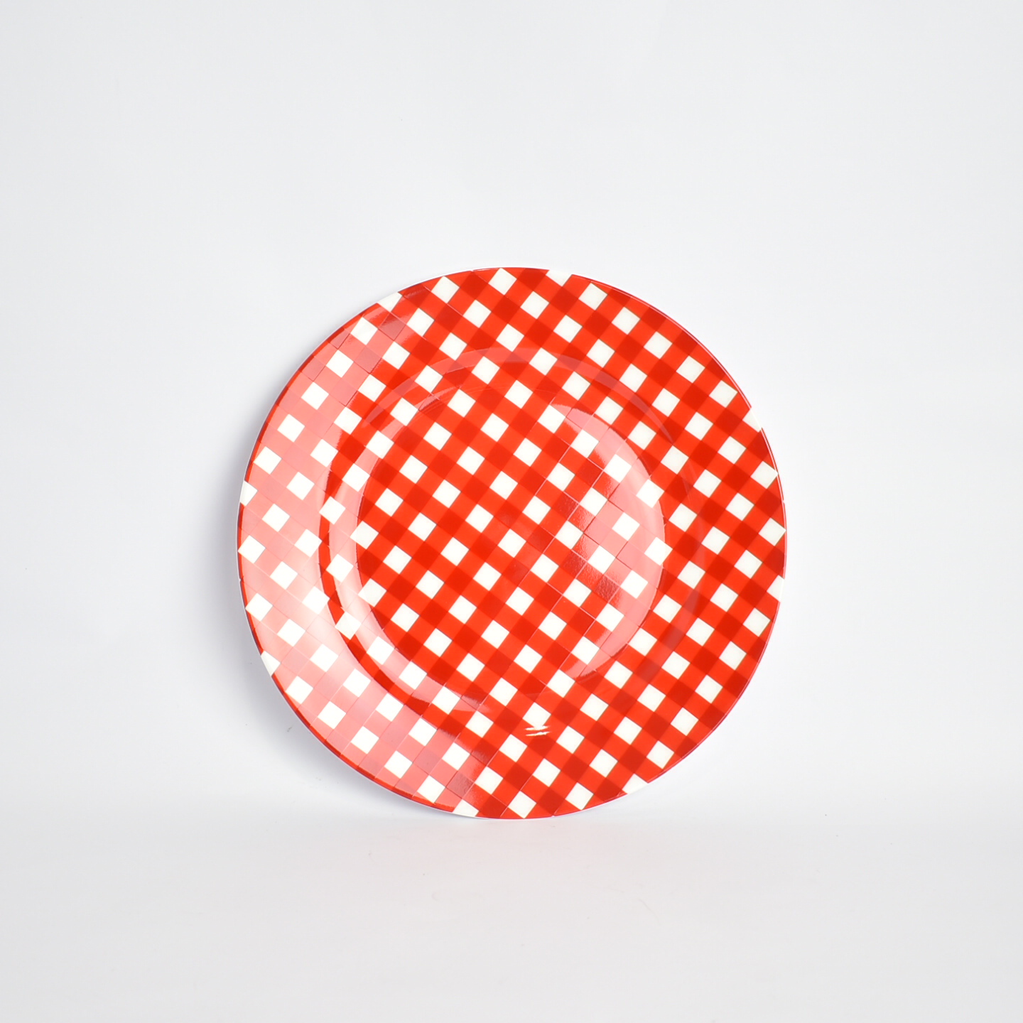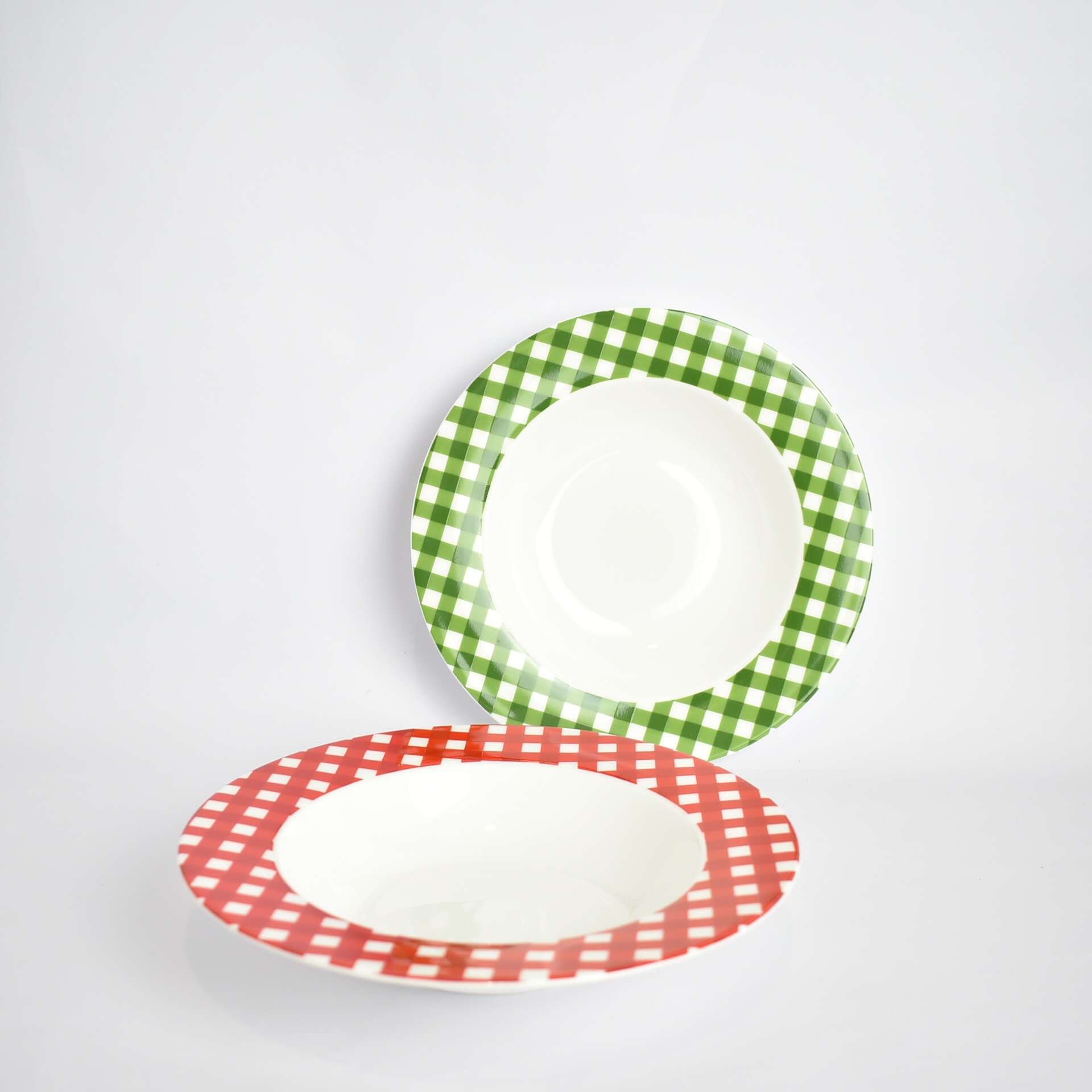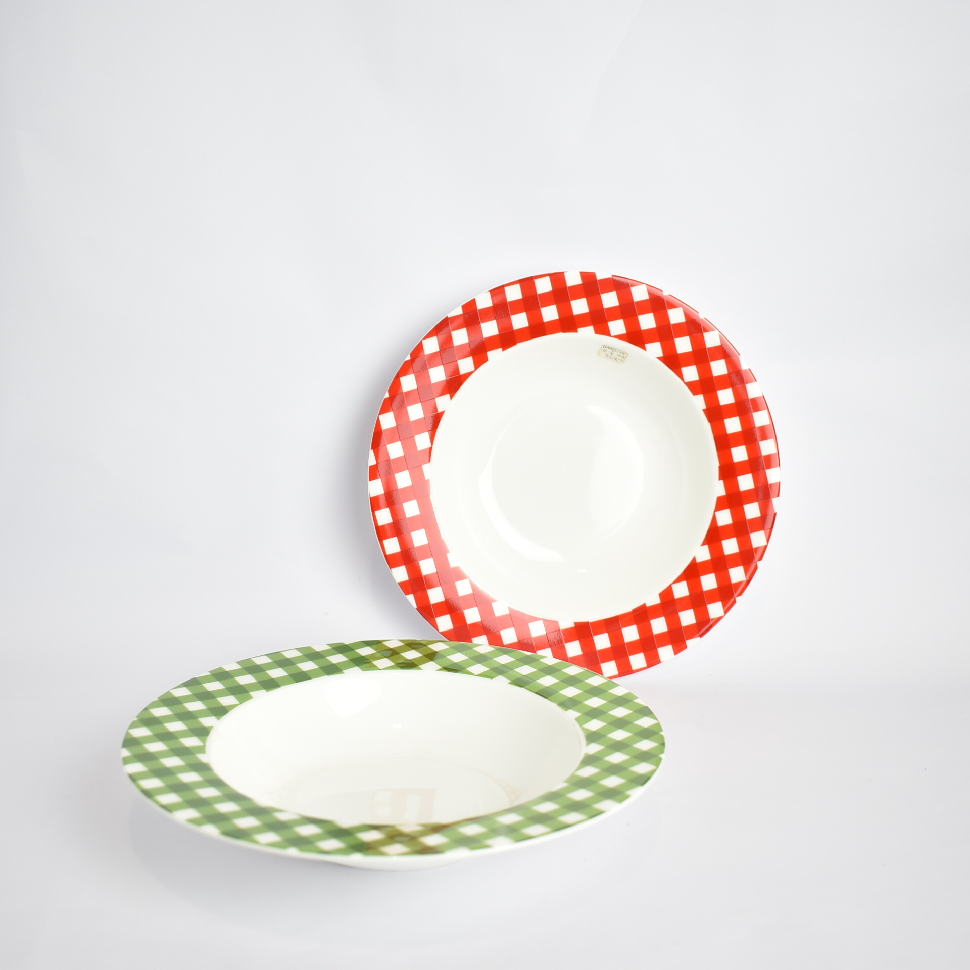 DINNER SET CHECKERED RED AND GREEN 18 PIECES Porcelain