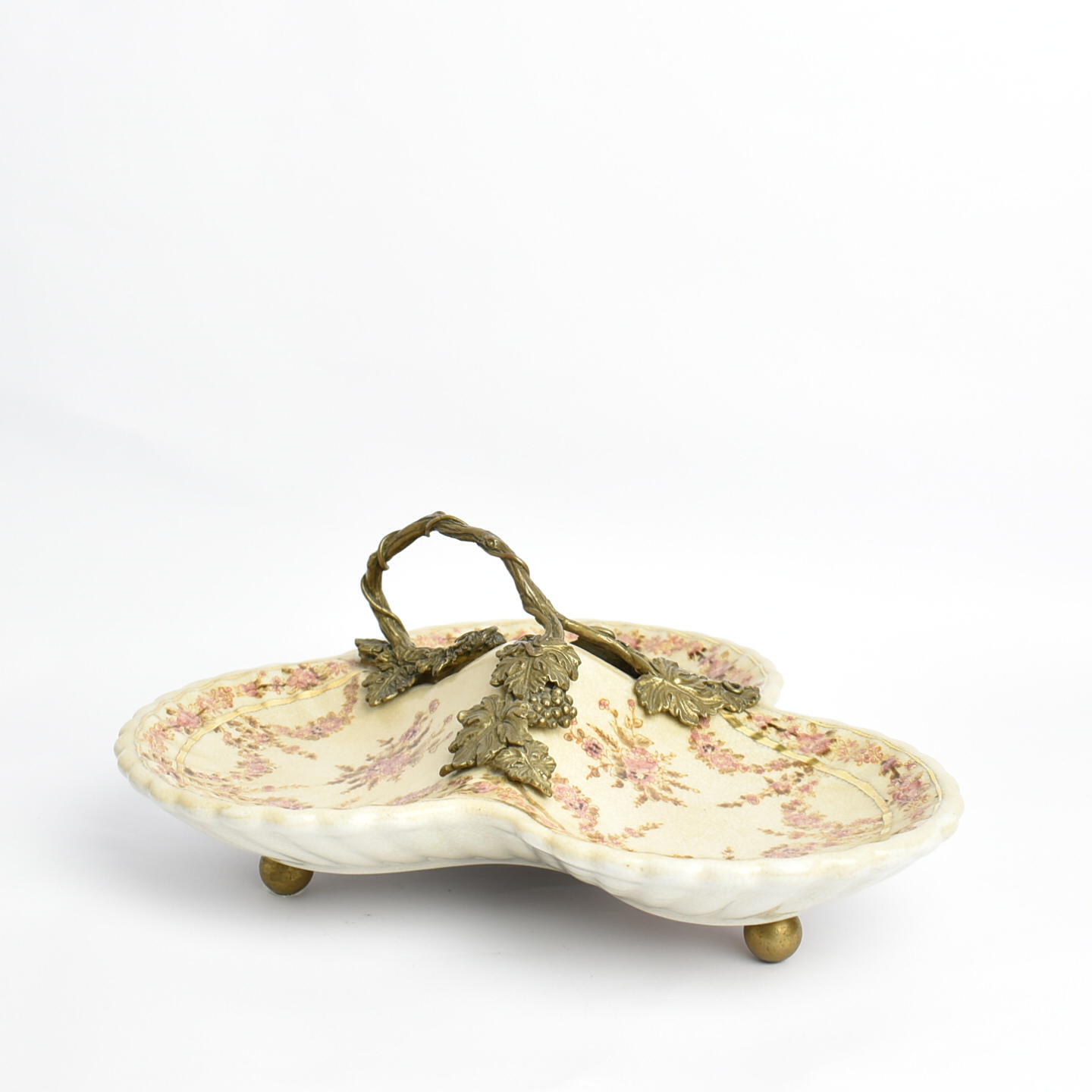 DRAWN PLATTER FOR NUTS WITH HANDLE Porcelain 27*25*12