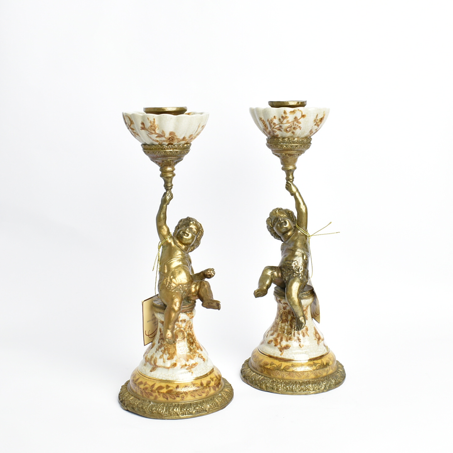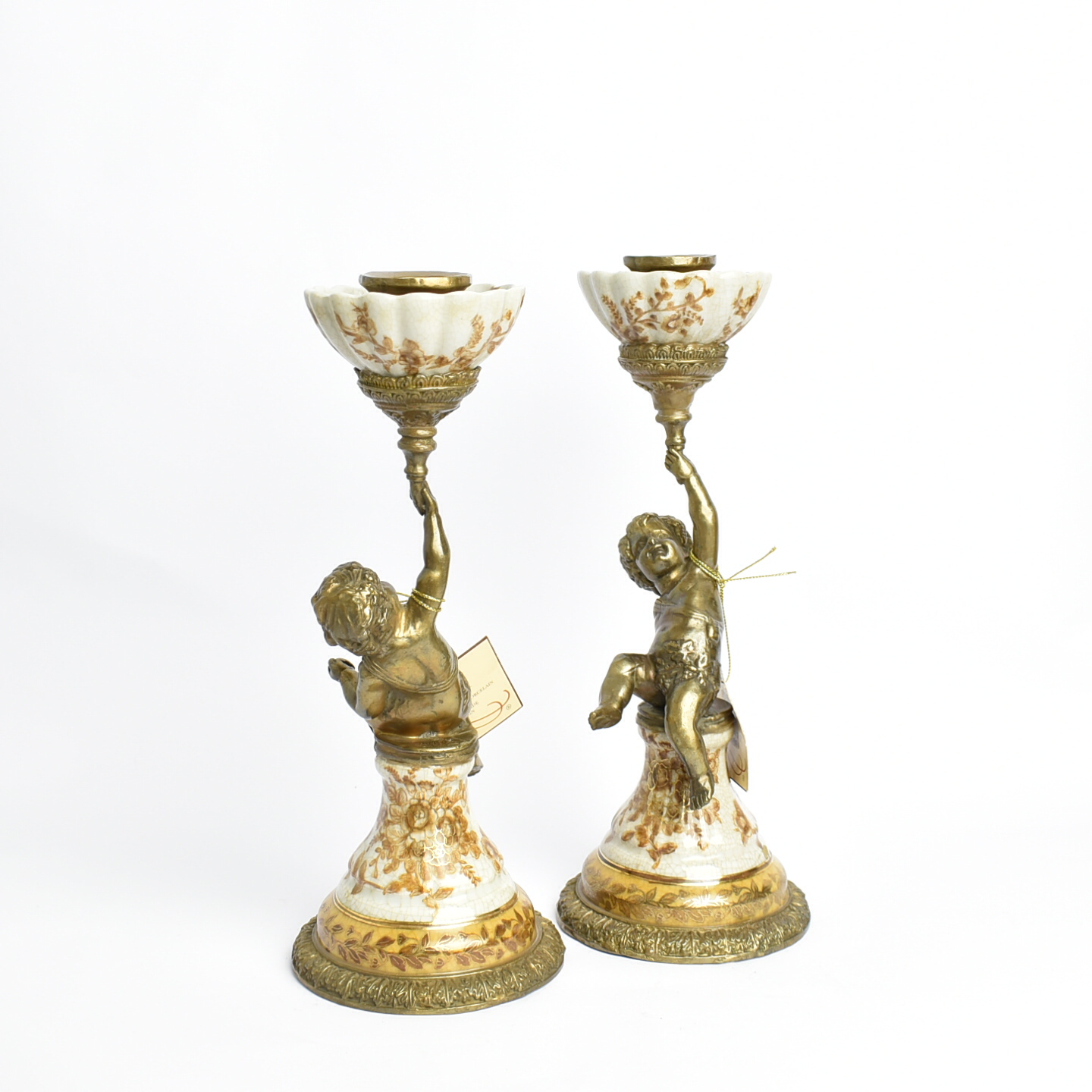 CANDLESTICK WITH ANGELS SET OF 2 PIECES Bronze Φ10*25