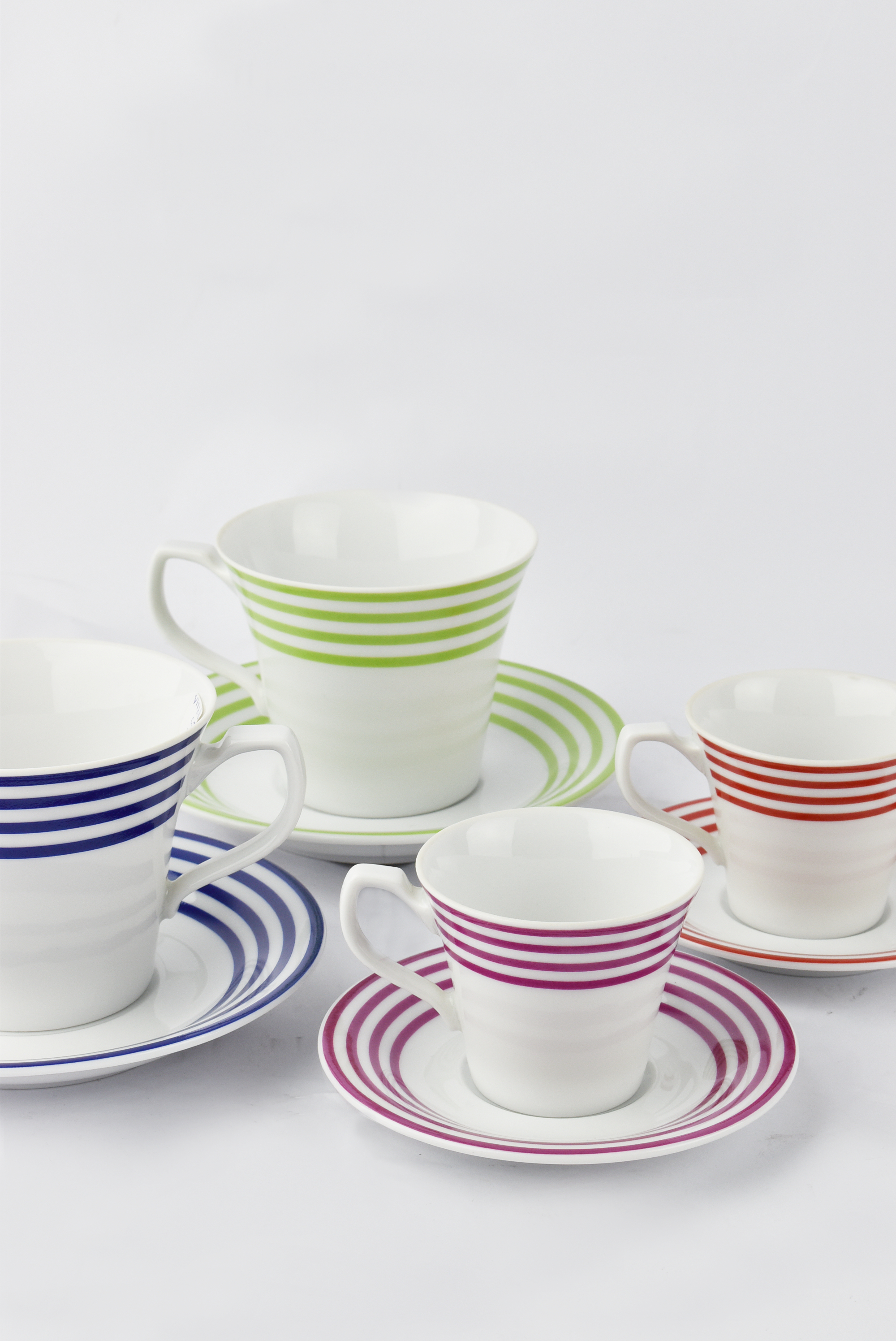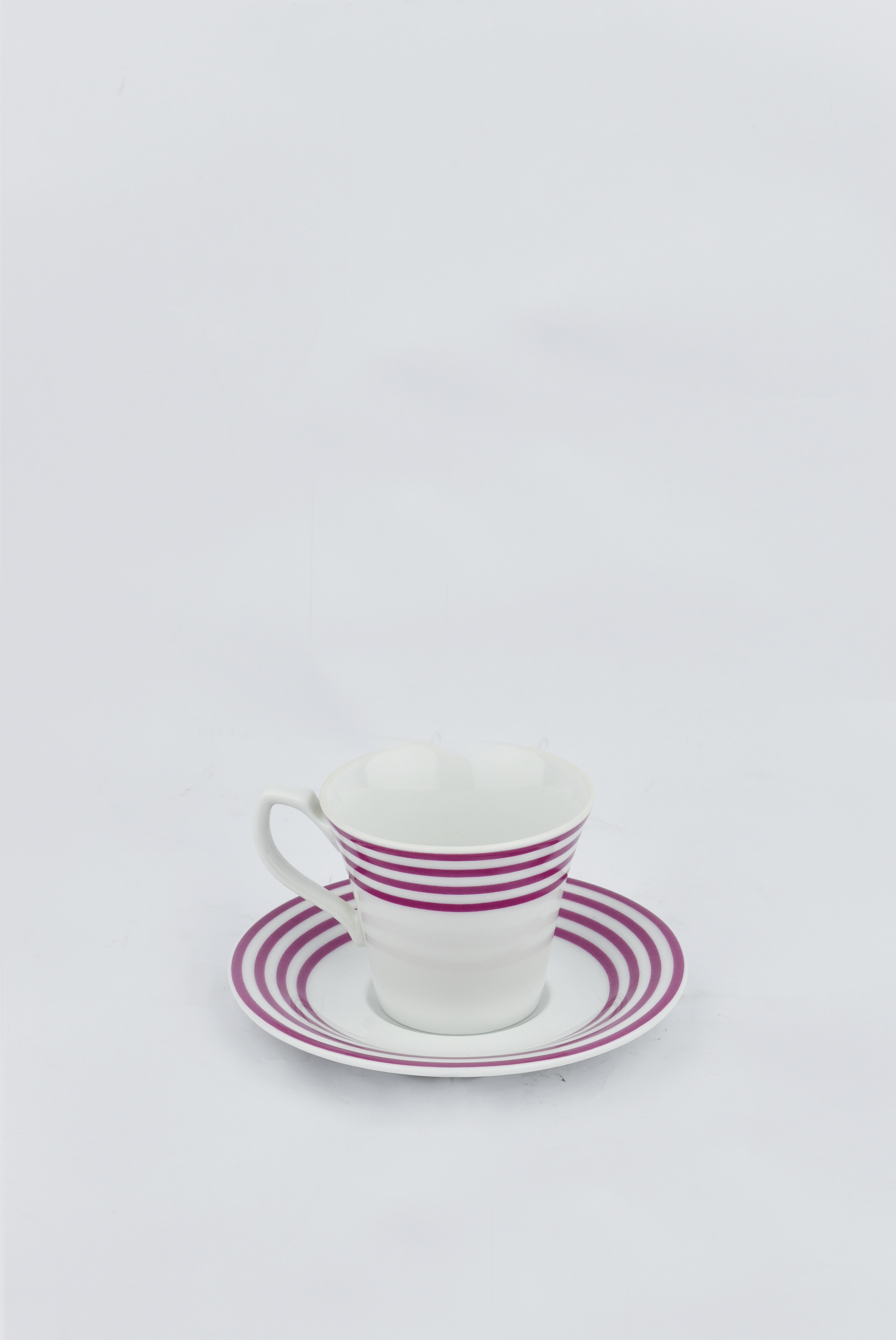 SET OF 6 PIECES CUP OF COFFEE WITH PURPLE STRIPES Porcelain 6.5*h5.5*8.5handle