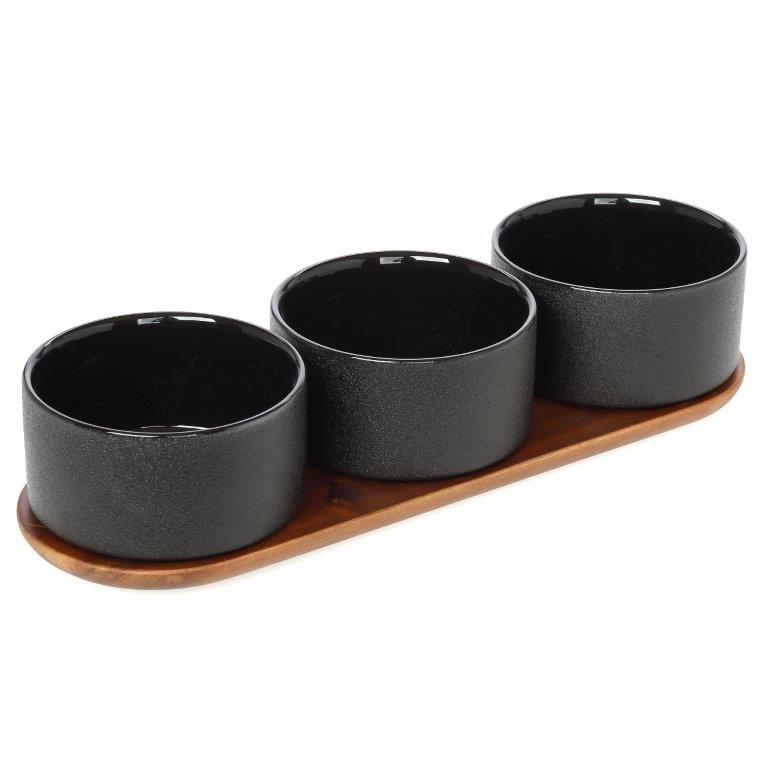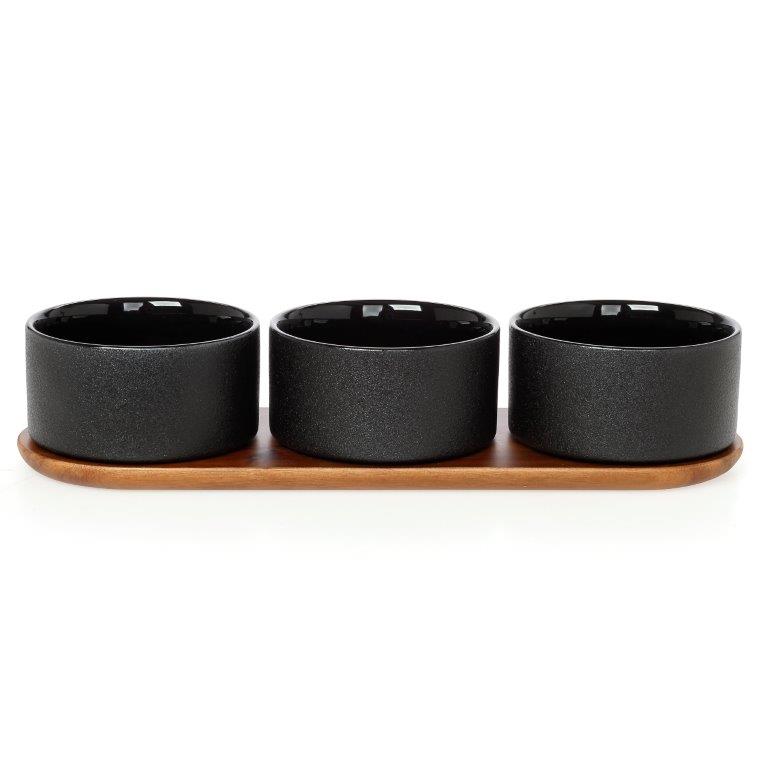 DRY - ORDEVIER CERAMIC 3-SEAT CERAMIC BLACK WITH WOODEN BASE Wood 40*14*8