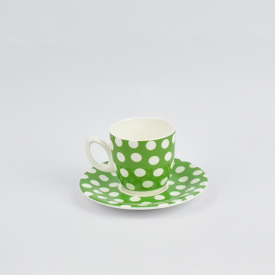 CUP OF COFFEE SET OF 6 PIECES WHITE AND GREEN Porcelain 6Χ8,5Χ6