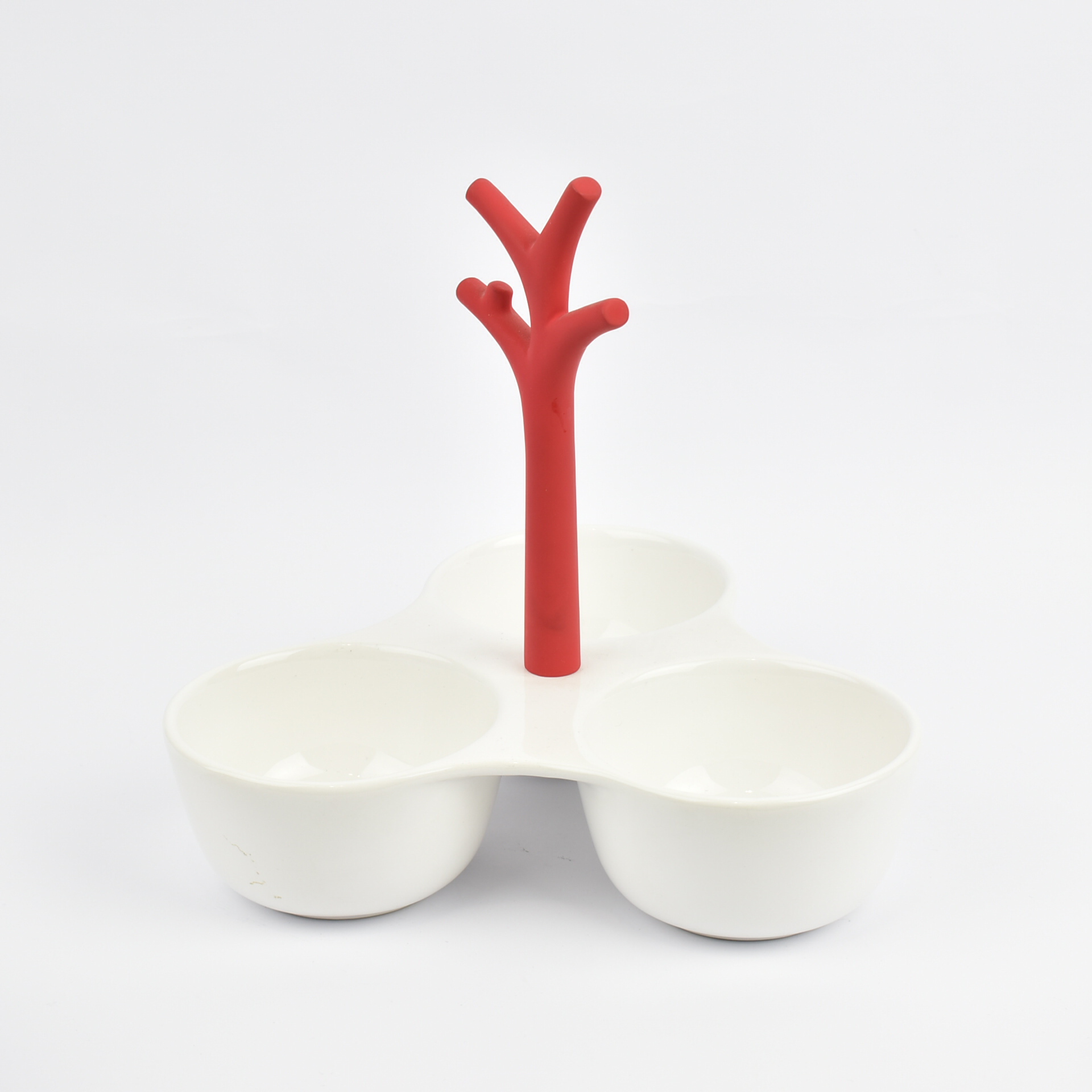 3 PLACES PLATTER WITH RED HANDLE Porcelain 21*20