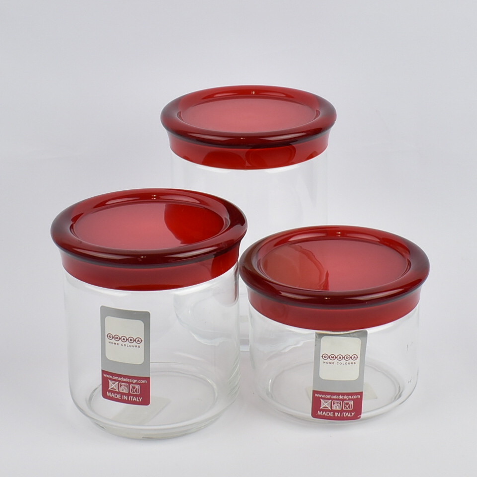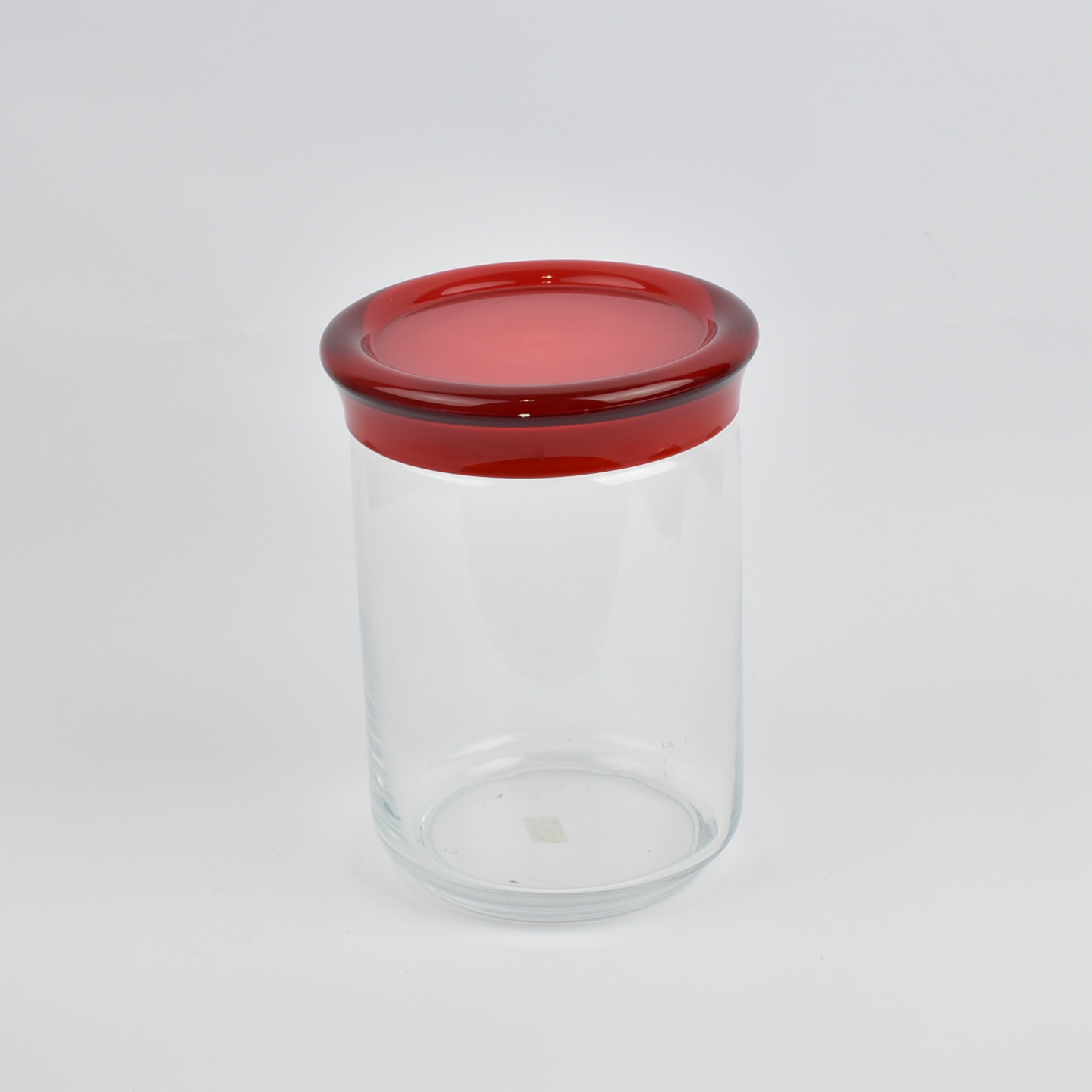 STORAGE JAR WITH RED CAP Glass Φ11,5*16