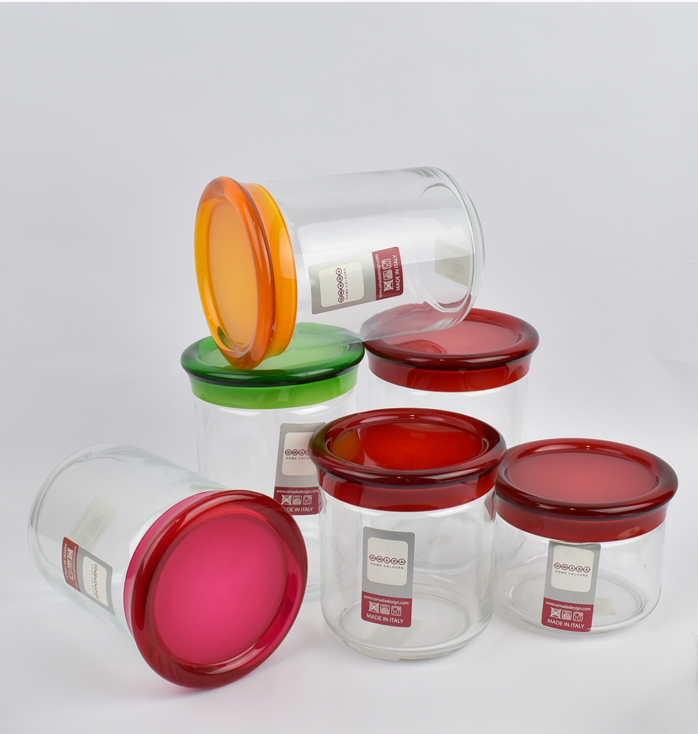 STORAGE JAR WITH ORANGE CAP Glass Φ11,5*16