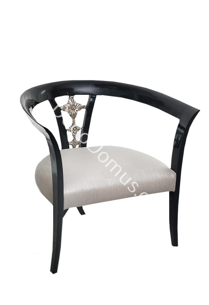 ENGRAVEN CHAIR BLACK LACQUER WITH SILVER LEAF AND IVORY FABRIC Wood 83*67*78(ΠΛΑΤΗ)*45(ΚΑΘΙΣΜΑ)