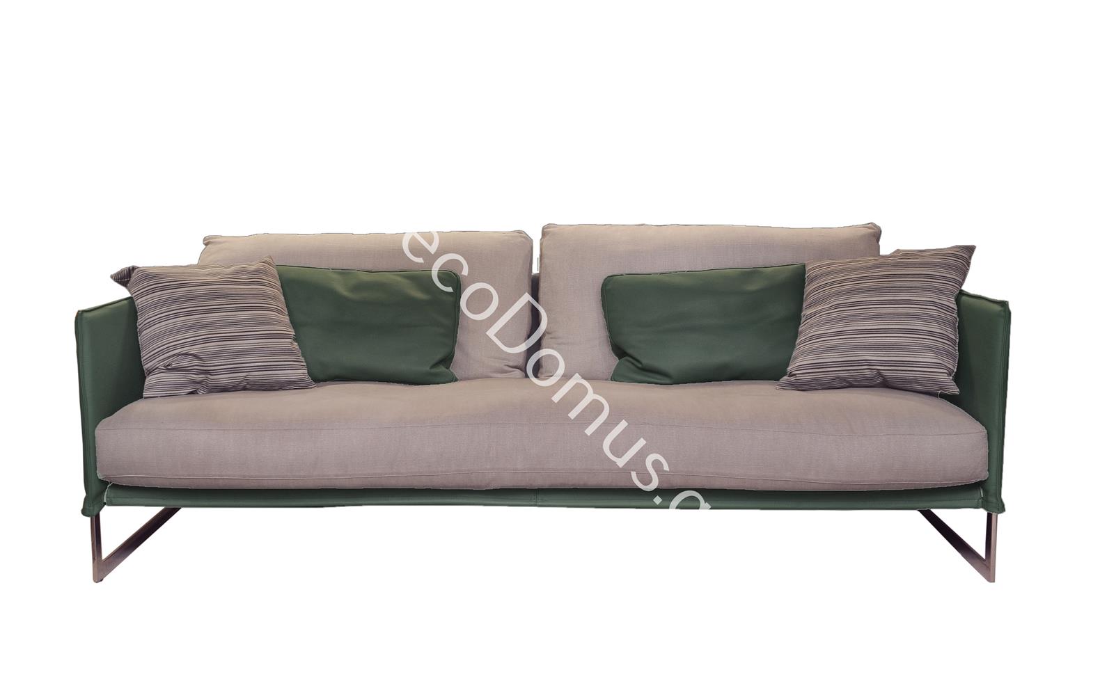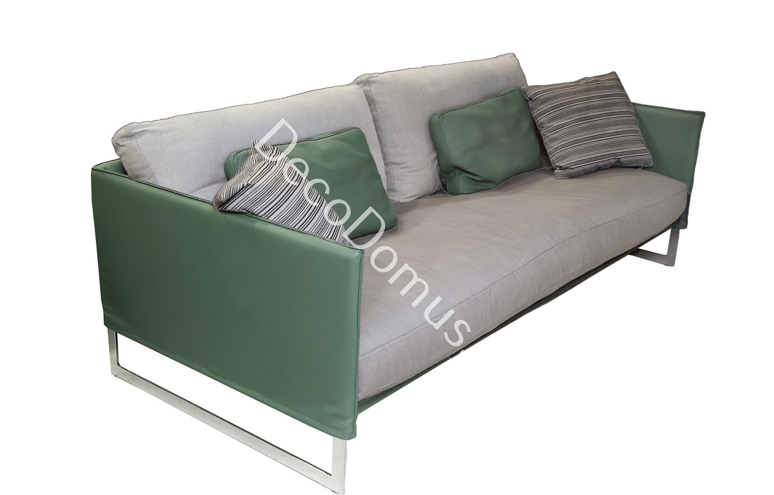 LEATHER COUCH GREEN WITH GREY FABRIC SABA BY ITALY Fabric 218*100*80